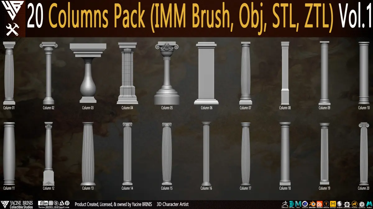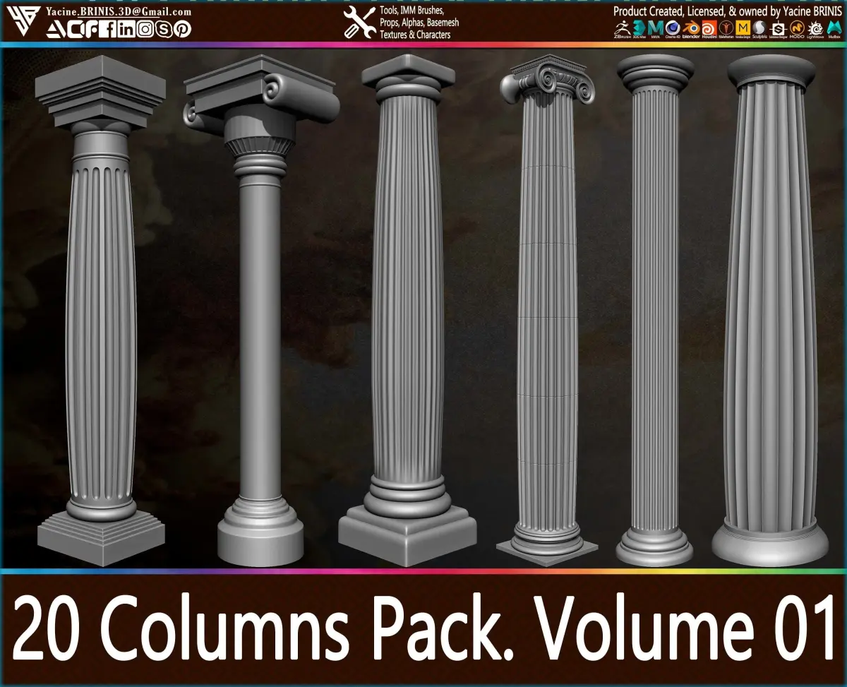 20 Columns Pack (IMM Brush, Obj, STL, ZTL) Vol.1