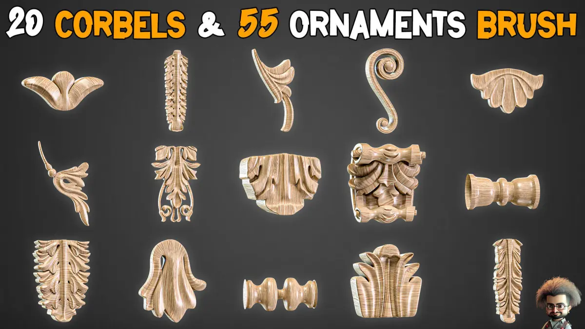 20 Corbels 3D Models + 54 Ornament Brushes and 3D Models + 11 Video Tutorials-VOL 01