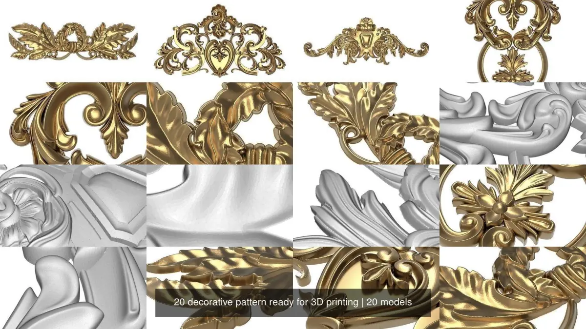 A set of 40 decorative patterns for interior visualization. Also, each pattern is prepared for 3D printing or manufacturing of a product on three-axis CNC machines.