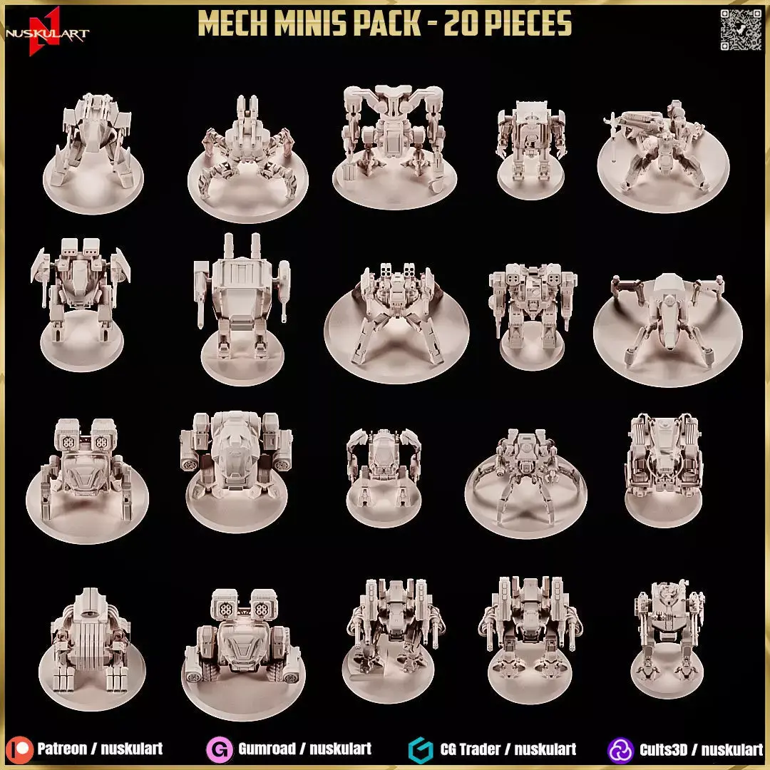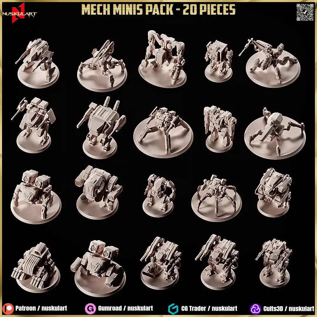 20 Different Mech Miniature Pack 1/48 Scale STL Collection
