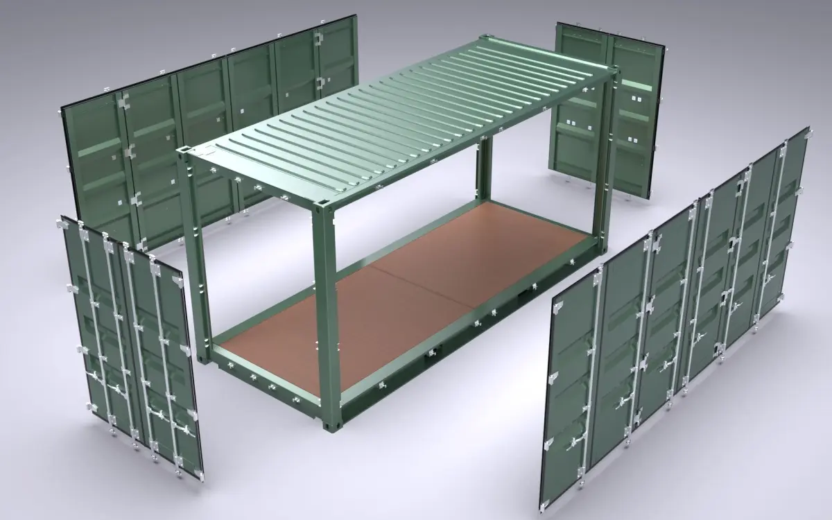 The 3D CAD model has been created with real dimensions, ensuring high accuracy in all external measurements, including length, width, and height. Additionally, the internal space accurately corresponds to the dimensions of a full side access 20 feet high cube container. The attached model files are exceptionally clean, allowing users to employ the STEP file of the frame for detailed engineering analysis. In the CAD model, there is no interference, and all bodies are devoid of quilts or surfaces, seamlessly bonded together. I assure you that this is an industry-grade model suitable not only for animation but also for integration into engineering projects.