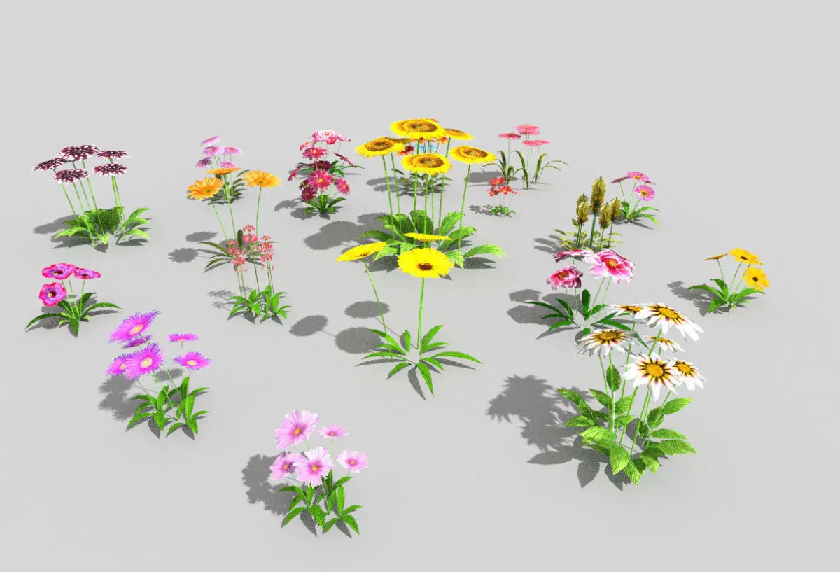 This pack contains 20 various low poly flowers.