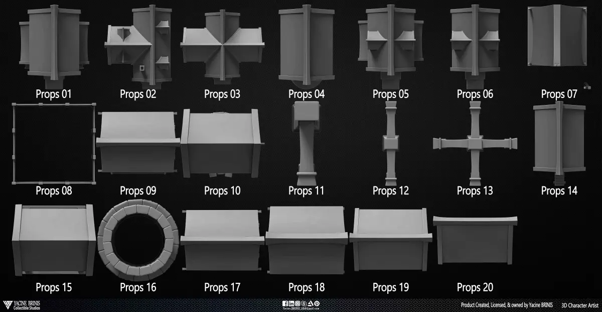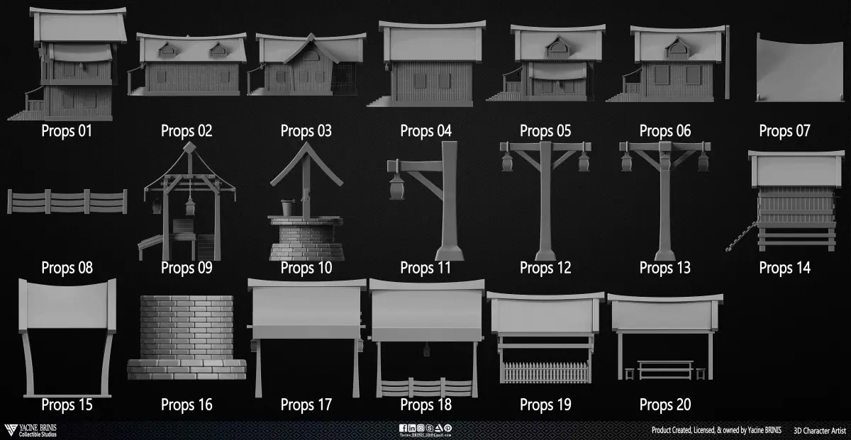 This is a pack of 20 Medieval Village Props you can use for your scenes on your 3D Software, on a scene for your game, show, reel, and 3d Print.
