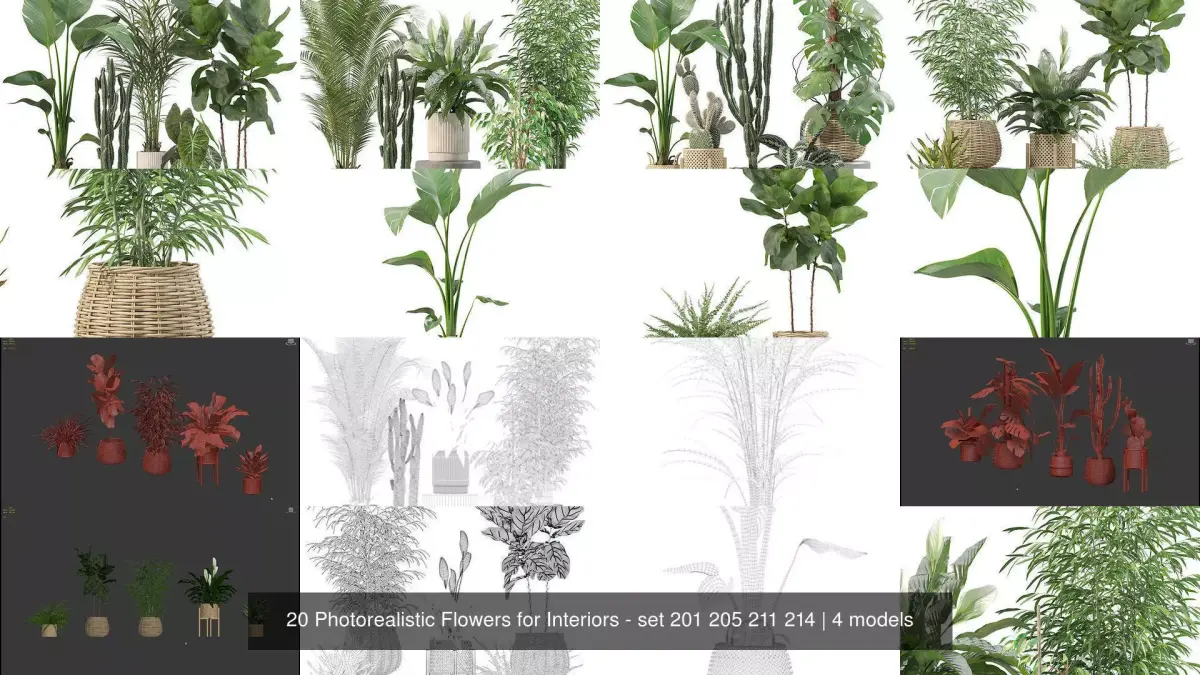 All objects in the scene are logically named and grouped and have its Multi / sub-object material. Our plants are perfect decoration for your interior visualization!