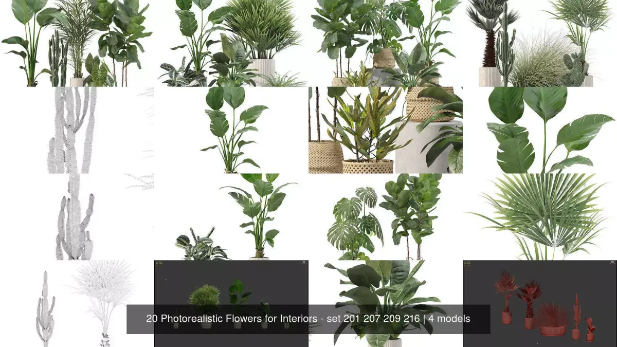 All objects in the scene are logically named and grouped and have its Multi / sub-object material. Our plants are perfect decoration for your interior visualization!