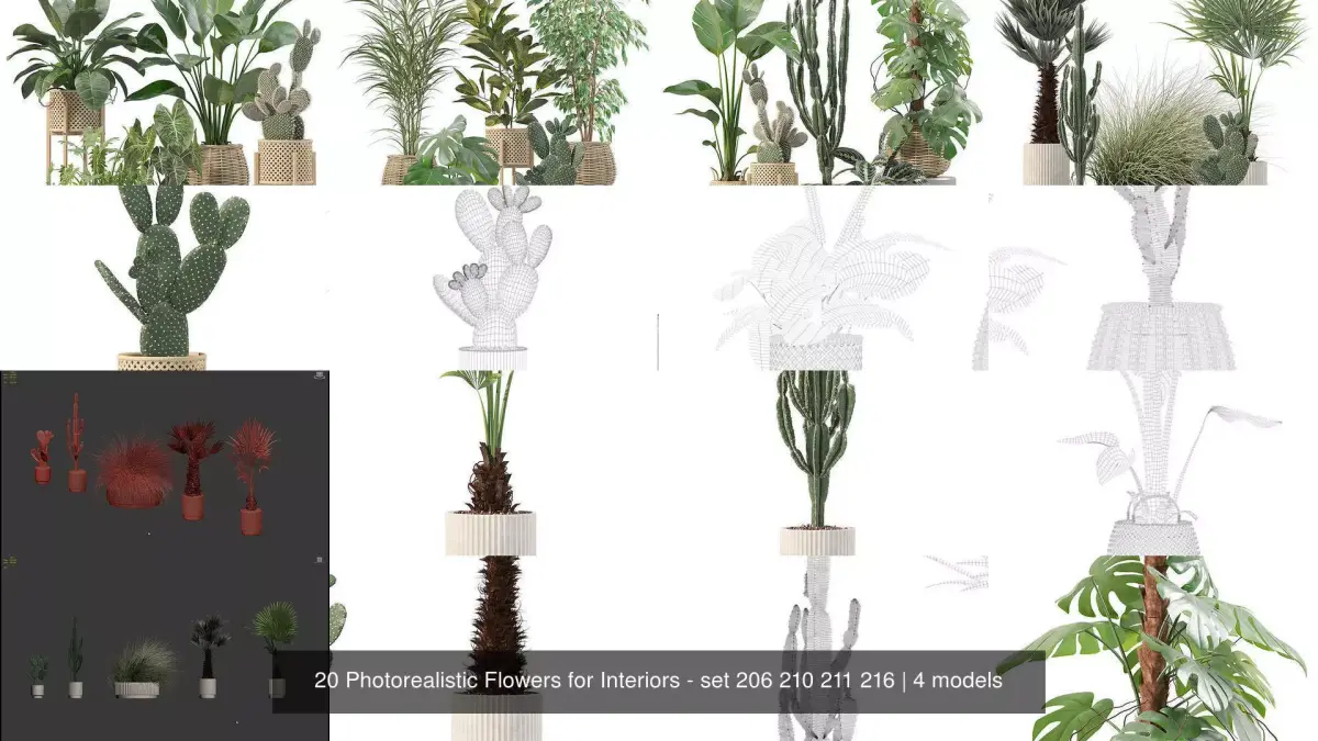 All objects in the scene are logically named and grouped and have its Multi / sub-object material. Our plants are perfect decoration for your interior visualization!