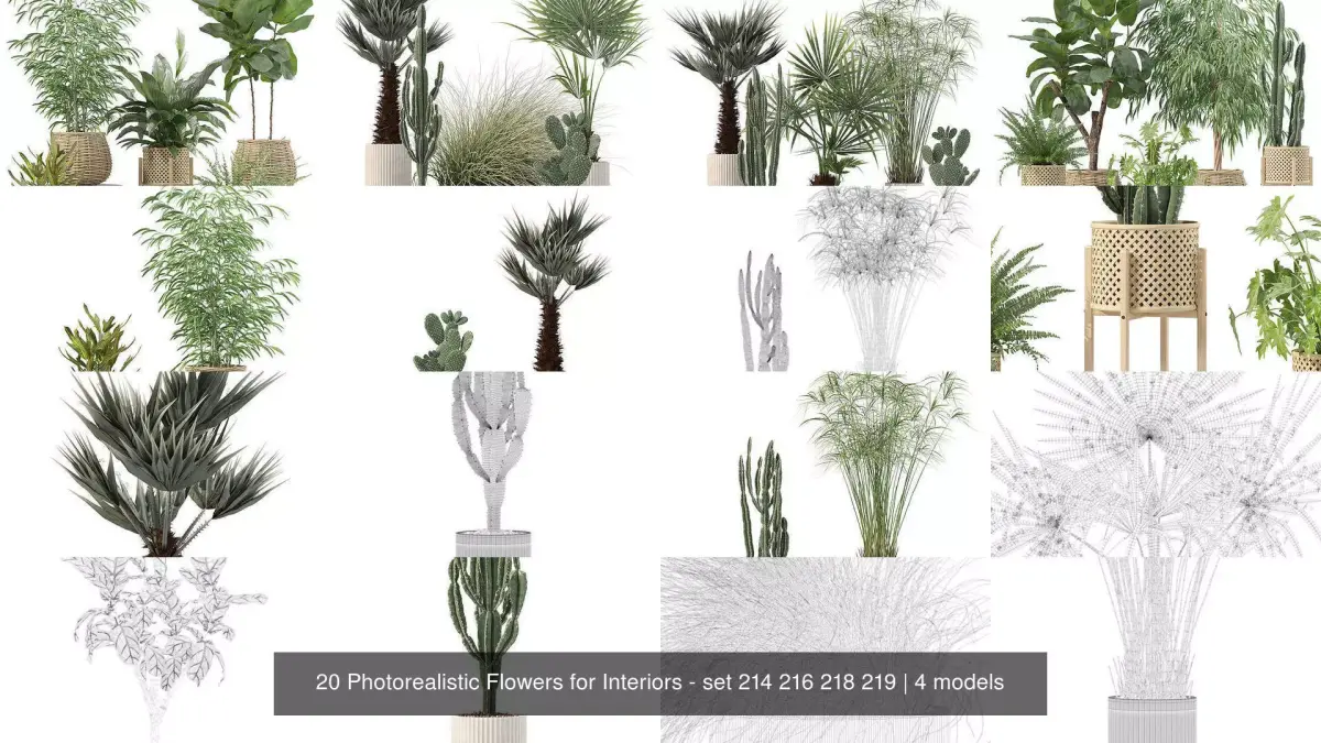 All objects in the scene are logically named and grouped and have its Multi / sub-object material. Our plants are perfect decoration for your interior visualization!