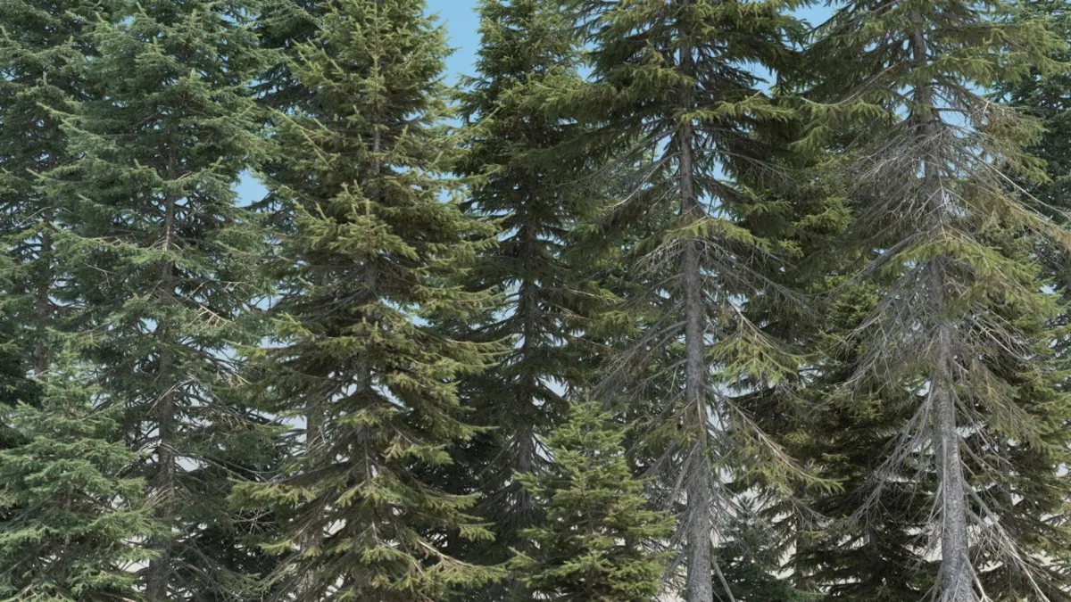 package contains 20 summer and 20 winter picea abies tree models. winter trees are exactly the same summer trees with snow.