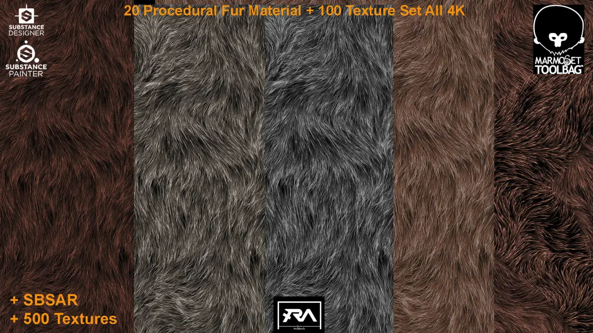 20 Procedural Fur Material (Tileable) + 100 Texture Set (500 Texture 4K - 5 Different Color)