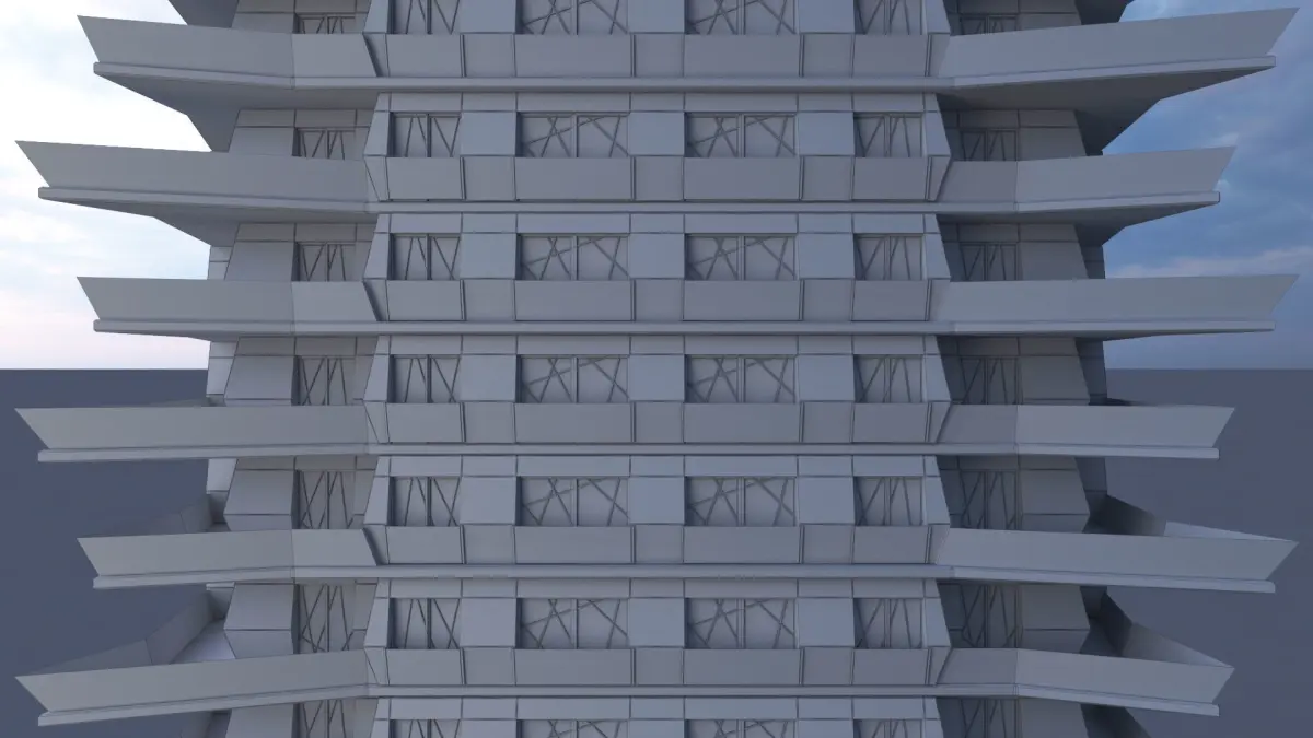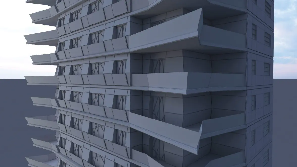 Low poly 3d model of a twenty-storey residential building.
