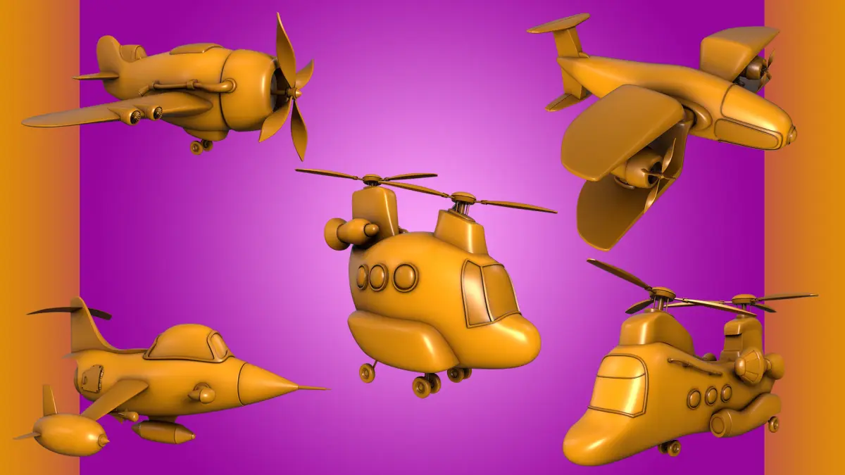 This product includes 20 stylized airecraft base meshes for environment use.