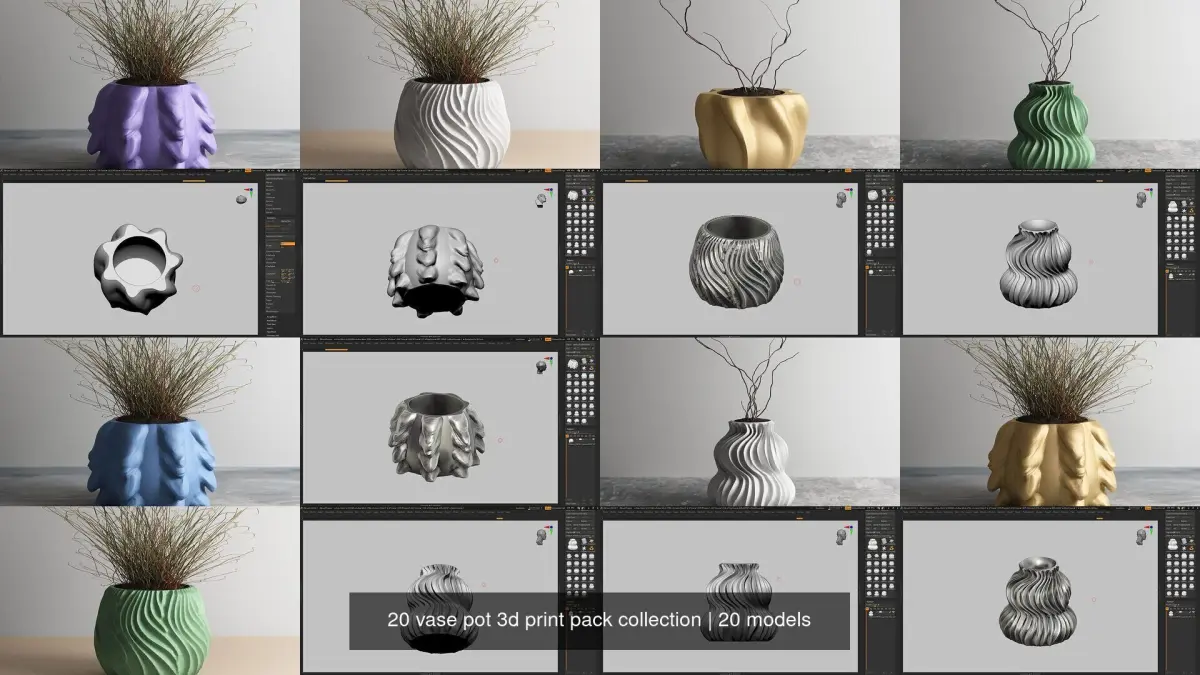 20 vase 3d print pack collectionA very attractive and beautiful package of 20 3D printable vases that instead of paying $400, you only pay $50, which is only $25 with a 50% discount, meaning you end up paying $25. A very exceptional opportunity. I hope you enjoy your purchase.