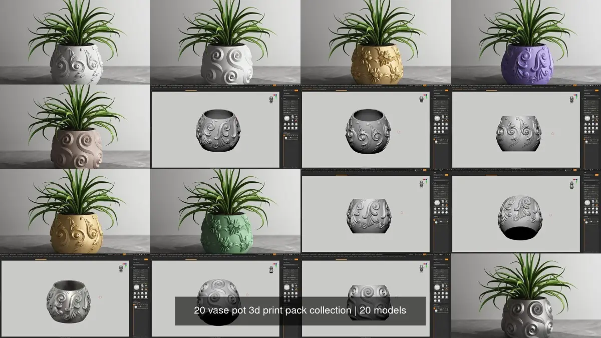 20 vase 3d print pack collectionA very attractive and beautiful package of 20 3D printable vases that instead of paying $400, you only pay $50, which is only $25 with a 50% discount, meaning you end up paying $25. A very exceptional opportunity. I hope you enjoy your purchase.
