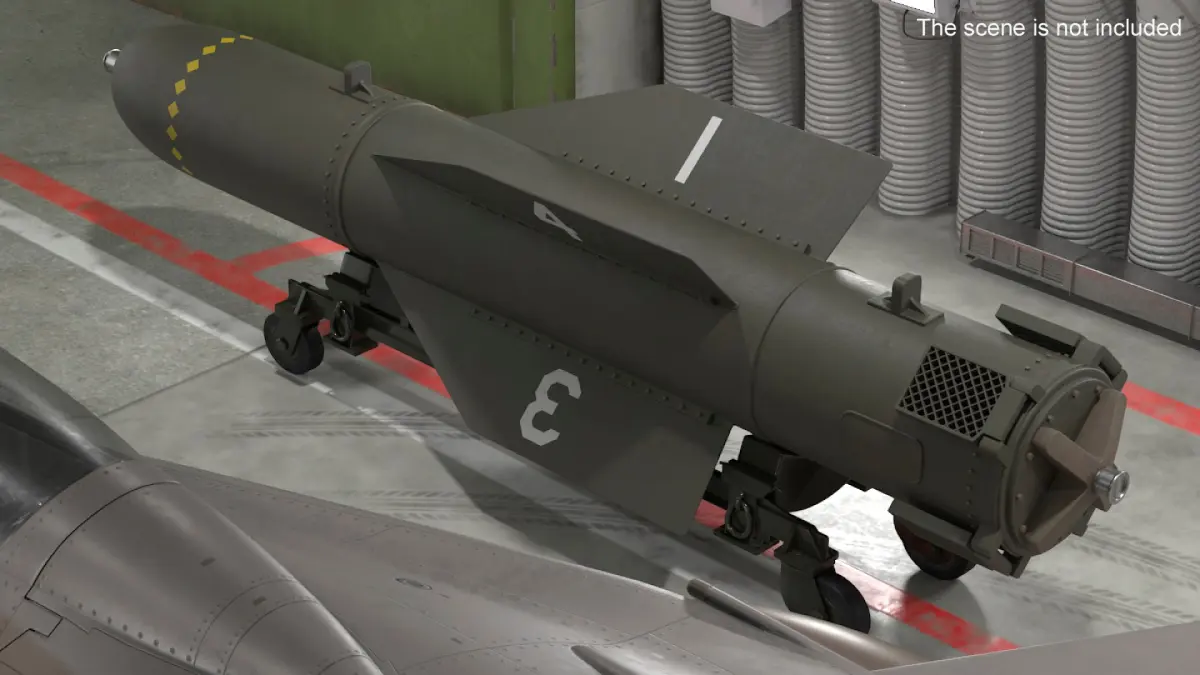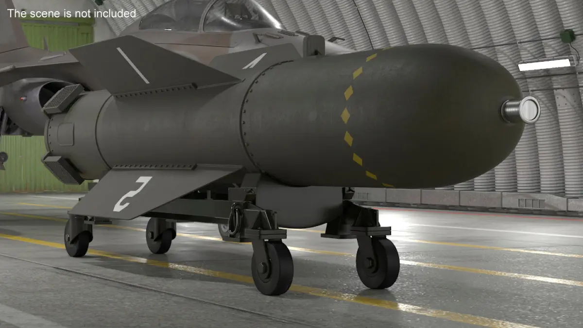 2000 Pound Tactical Bomb On Support Cart is a high quality, photo real 3d model that will enhance detail and realism to any of your rendering projects. The model has a fully textured, detailed design that allows for close-up renders, and was originally modeled in 3ds Max 2020 and rendered with V-Ray. Renders have no postprocessing!