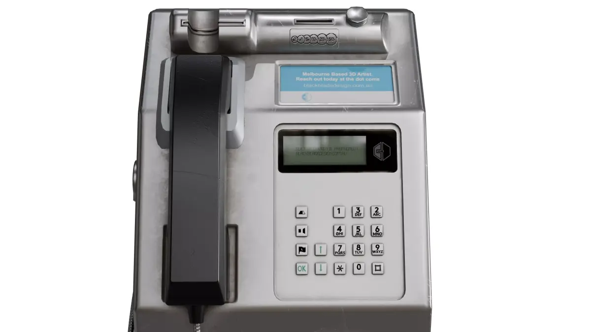 Detailed, production-ready 3D model of a classic Australian public payphone, perfect for urban scenes, post-apocalyptic environments, realistic city renders, or nostalgic 90s/2000s settings.