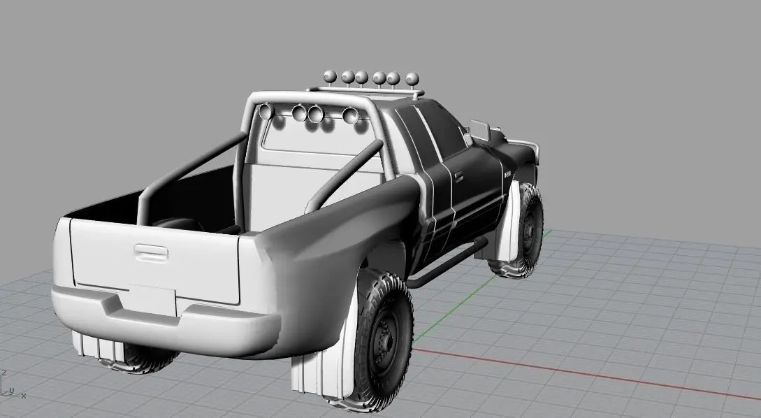 Made this design as a project for a high school design and decided to upload it here for everyone to use at a cheap price. It is a 2004 Dodge ram 2500 extended cab. It has been outfitted for wheeling and off-roading with larger tires and KC lights to the front and rear of the truck.