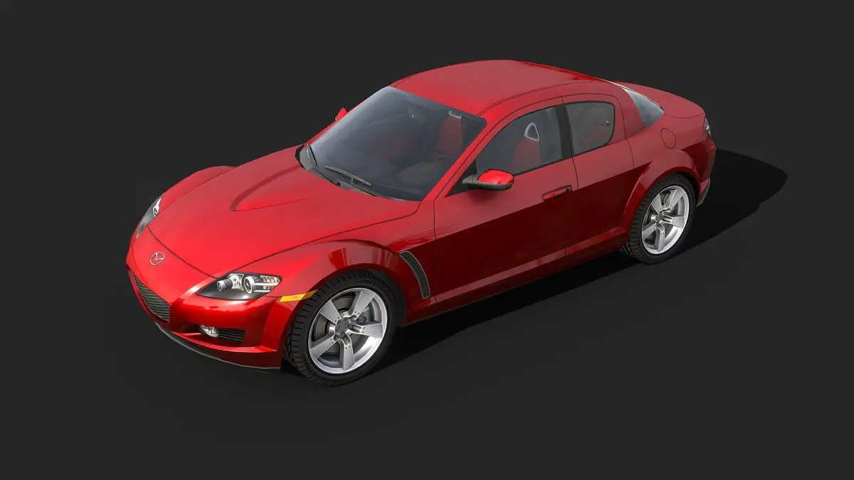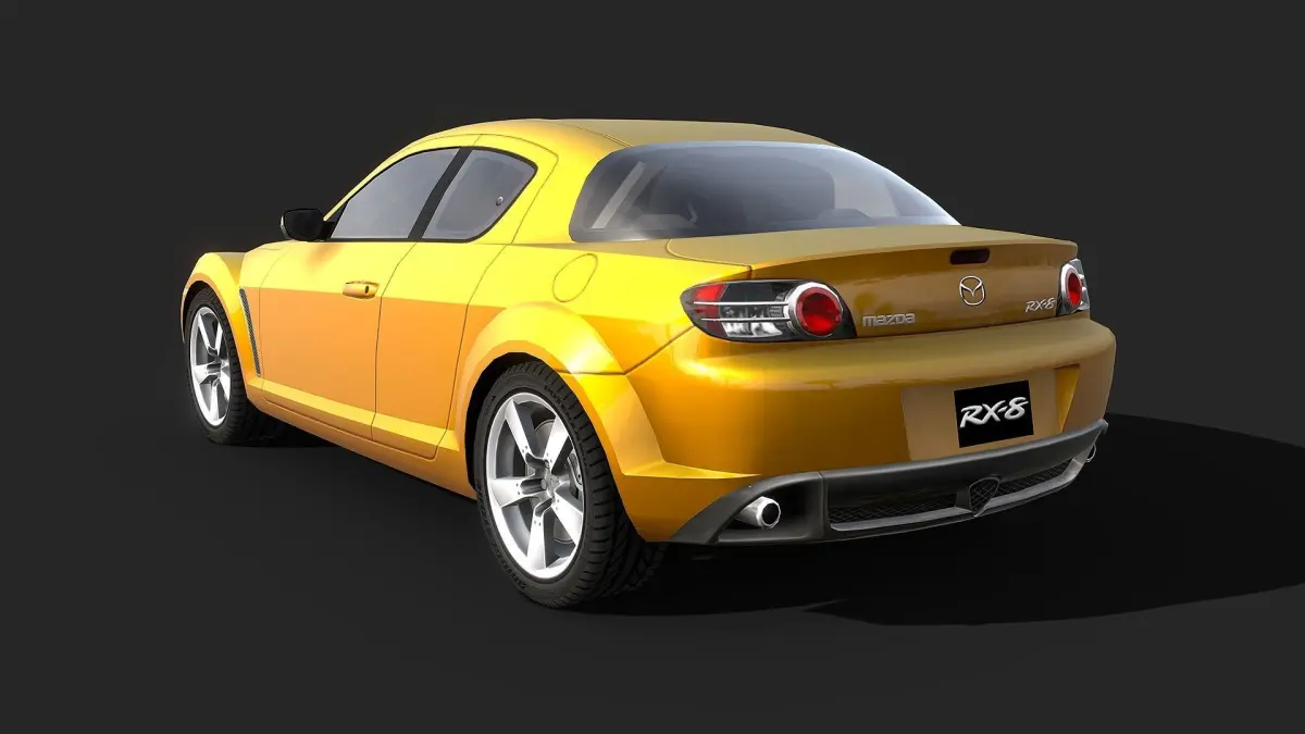A low poly model of the 2004 Mazda RX-8. Purchased model also includes the X-Men X2 movie version with custom rims, spoiler, and body accents. Photoshop source files as well as model year color variations are included. Modelled in Maya exported in FBX format. Screenshots are from a real time renderer.