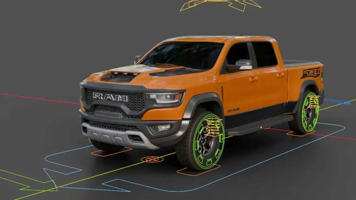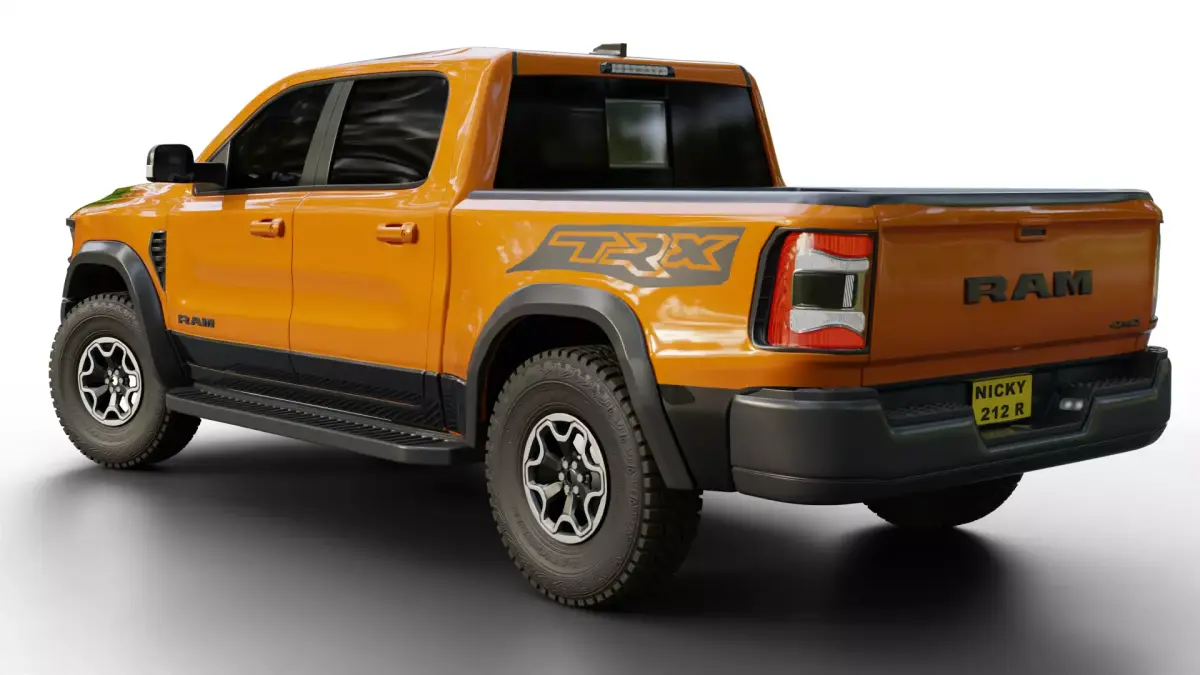 3D model of the 2020 Dodge RAM 1500 TRX. Created in Blender and already rigged using the Rigacar add-on. The mesh of the model is mainly quads.