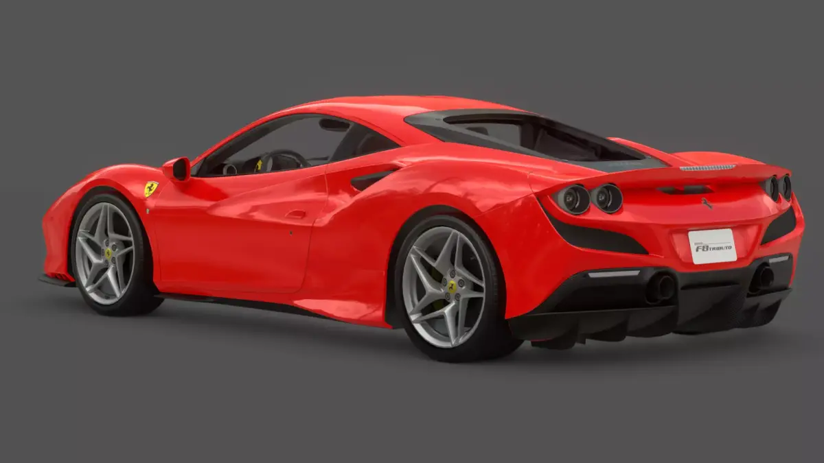 PBR Textures: Rosso Corsa paint, brake calipers, leather, and carbon finishes.