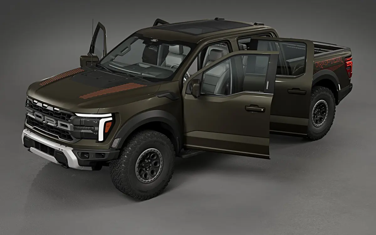 Photorealistic, high-quality and accurate 3D model of 2024 Ford F-150 Raptor with high detailed interior and pickup bed.
