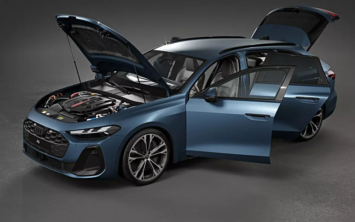 Photorealistic, high-quality and accurate 3D model of 2025 Audi A5 Avant with high detailed interior, openable hood and trunk.