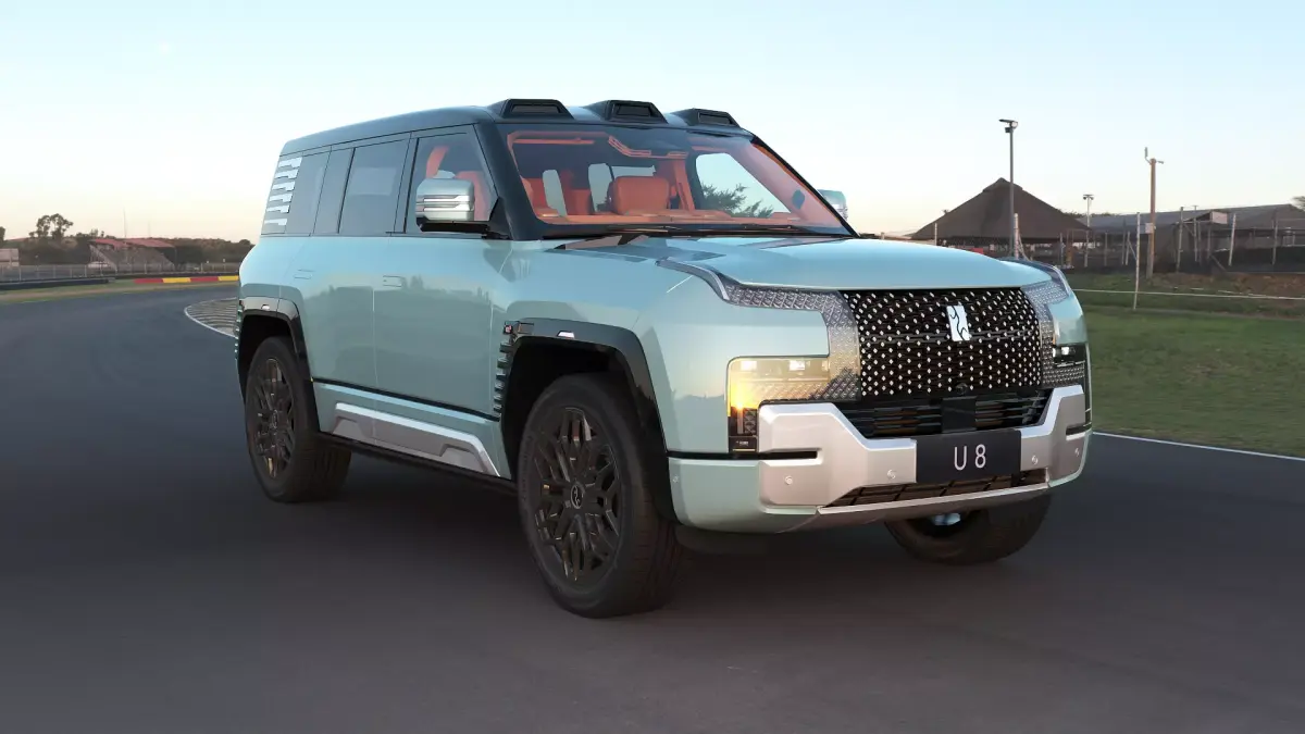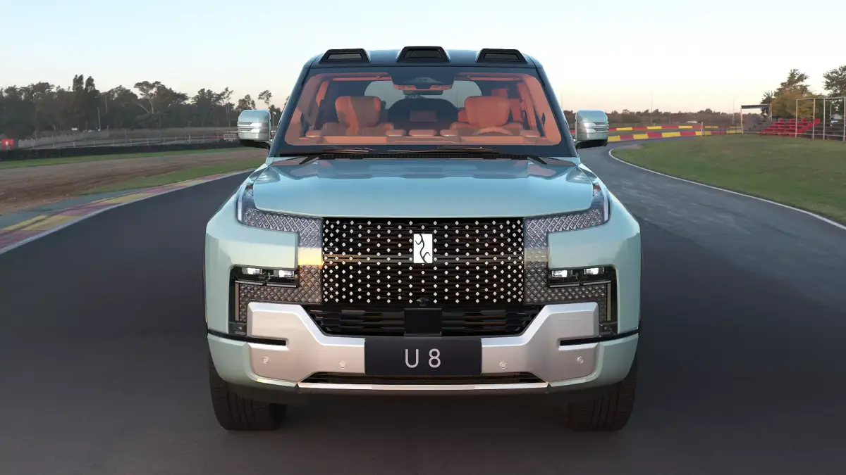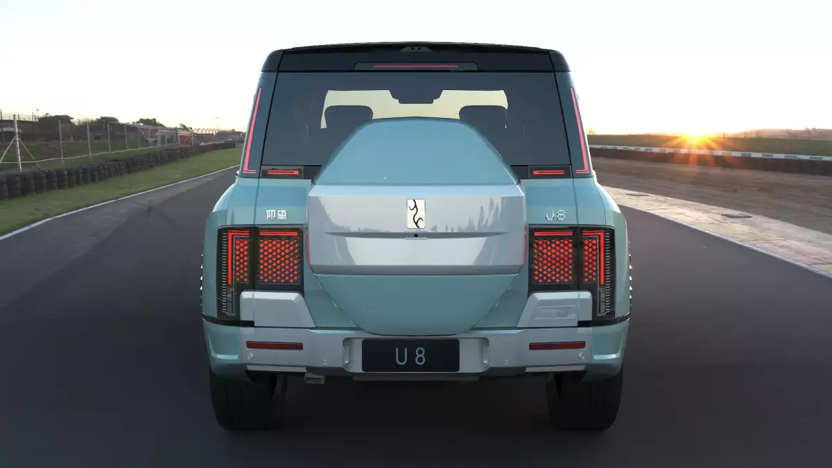 The Yangwang U8 is a high-end new energy off-road vehicle from Yangwang, a brand under BYD. The Yangwang U8 is equipped with two top-level technologies: e-Four-Way and Cloud-Ride-P intelligent hydraulic body control system. It boasts four-wheel independent torque vectoring control capability, enabling it to achieve extreme handling stability, tire blowout control, emergency floating, U-turns in place, agile steering, and other functionalities. With a length of over 5 meters and a width of over 2 meters, it adopts the family design of the Yangwang brand, 'Gate of Time and Space'.