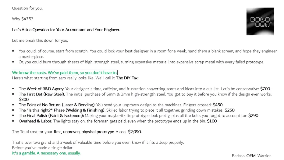 Actual CAD made from Actual Vehicle Scans.