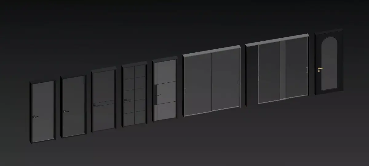 This is a collection of popular interior door styles for 2025, covering modern minimalist, light luxury, industrial and other design aesthetics. It includes various types such as swing doors, sliding doors, glass doors, and hidden doors, with wood and metal frames + glass as the main materials. The design emphasizes clean lines, same-color frames, and transparent textures, making it suitable for decoration matching in modern homes, apartments, villas and other spaces. These doors combine aesthetic appeal with practical functions such as sound insulation and space utilization.