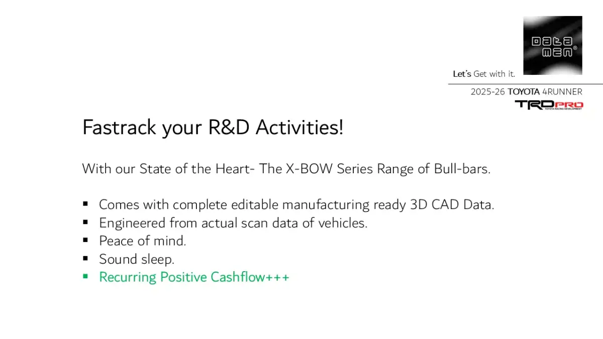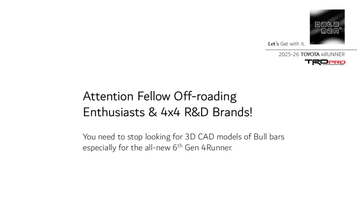 We’ve been through the R&D nightmare, we’ve perfected the angles, and we’ve engineered a production-ready, battle-tested design for the 2025+ TOYOTA 4RUNNER.