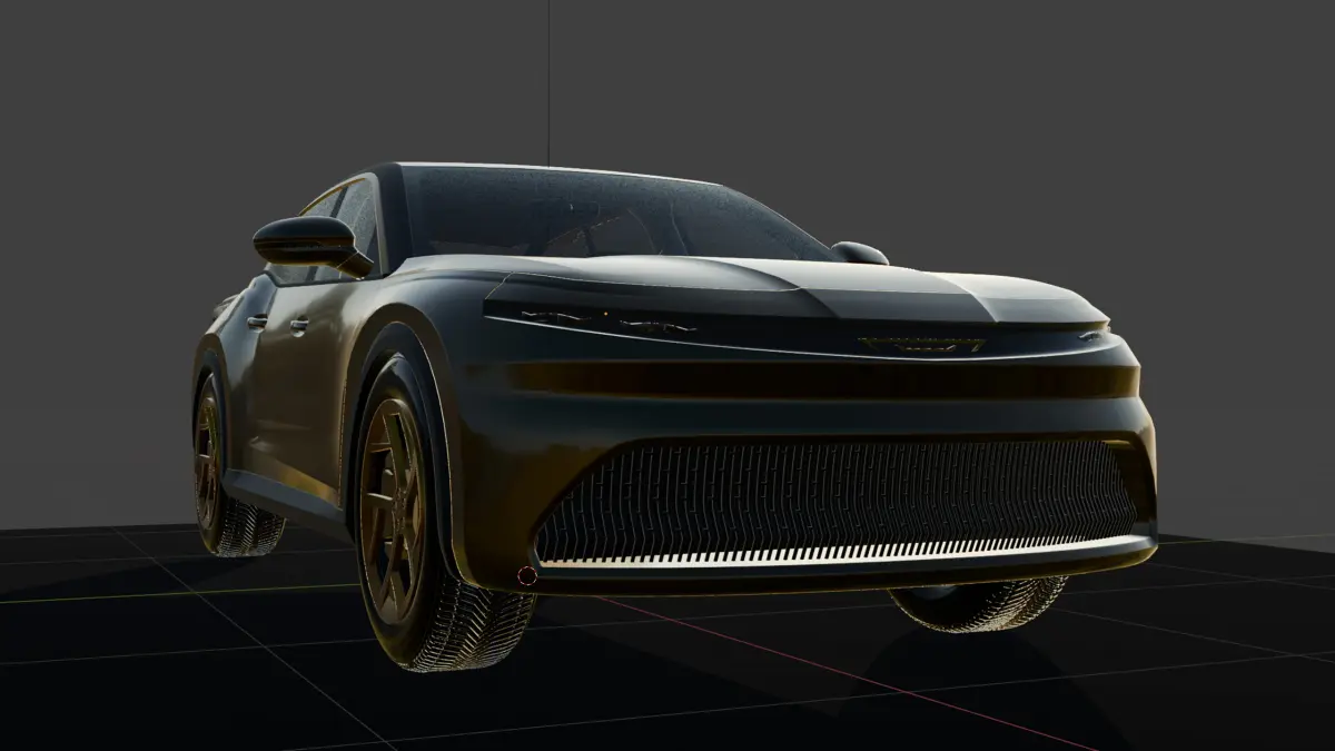 This one is shown in what would be a small batch Sport trim with an exterior color called “Banquet Metallic” and an interior color called “Bunker/Truffle”.