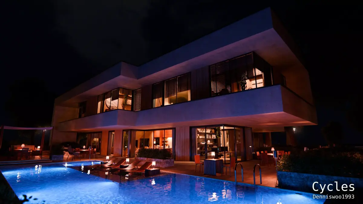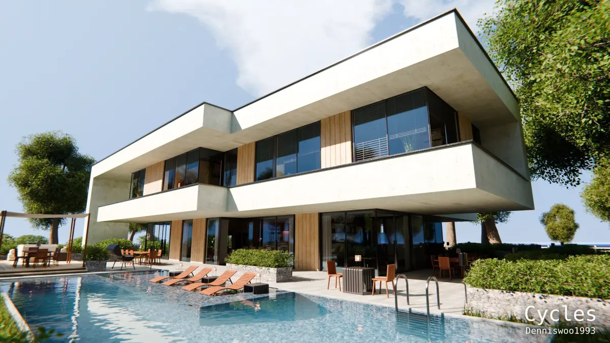 This is a high quality modular modern mansion with a fully furnished interior for Blender Eevee and Cycles