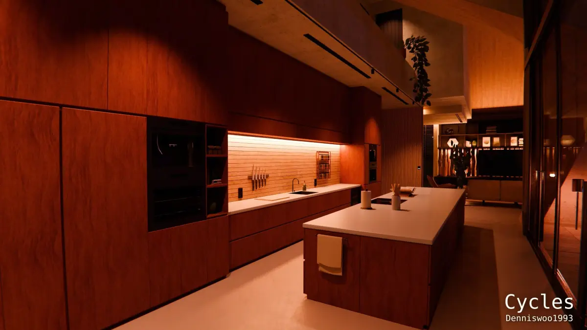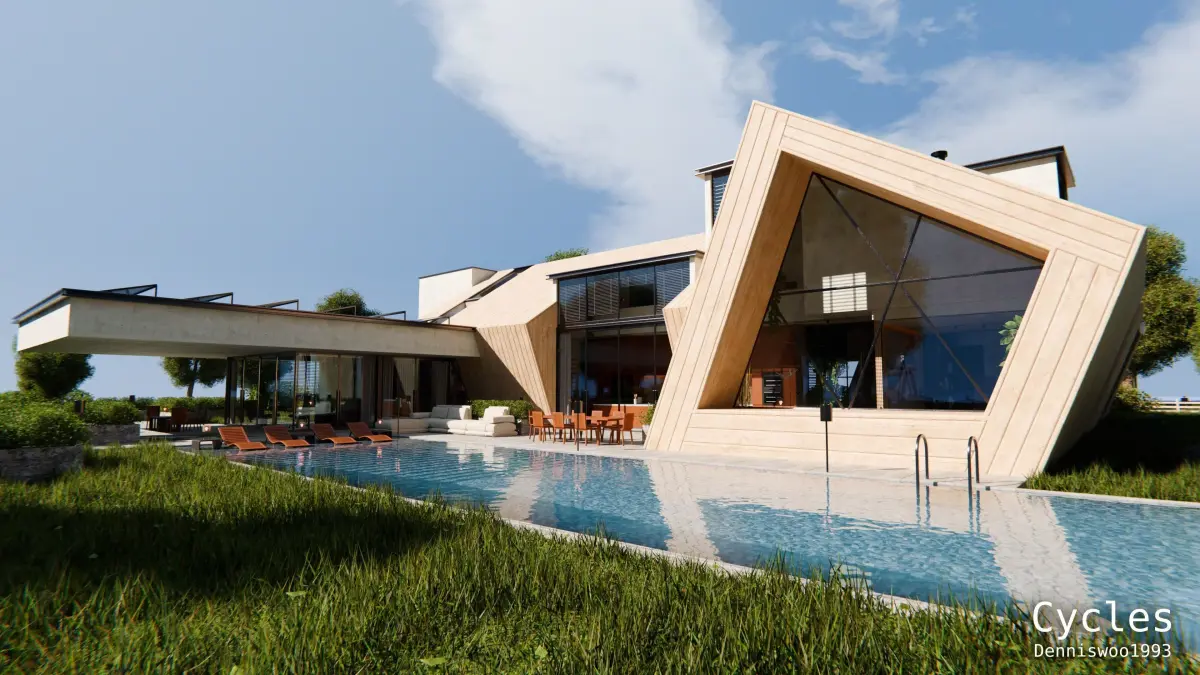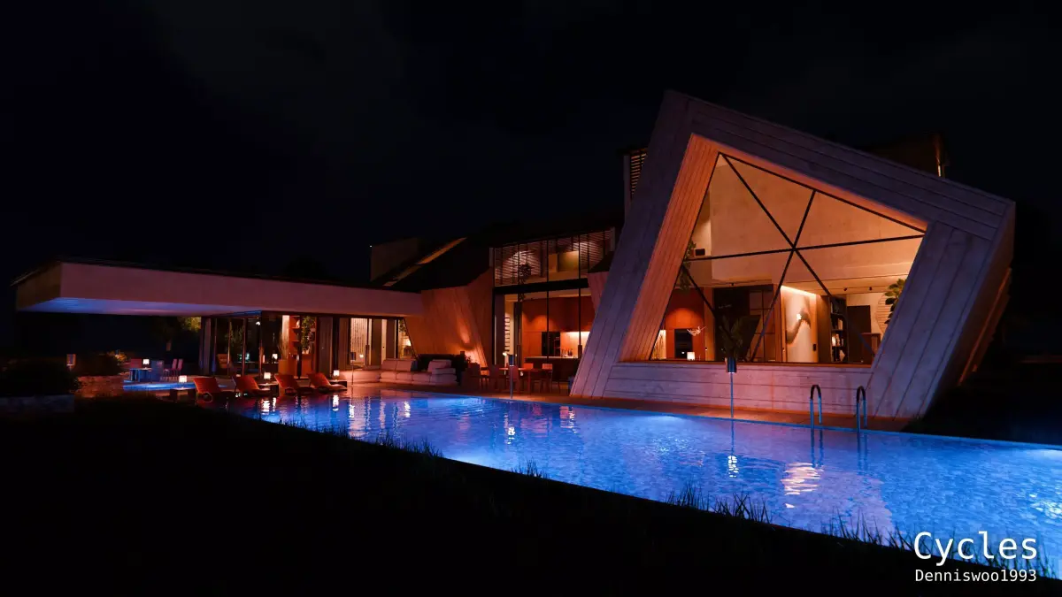 This is a high quality modern mansion with a fully furnished interior for Blender Eevee and Cycles