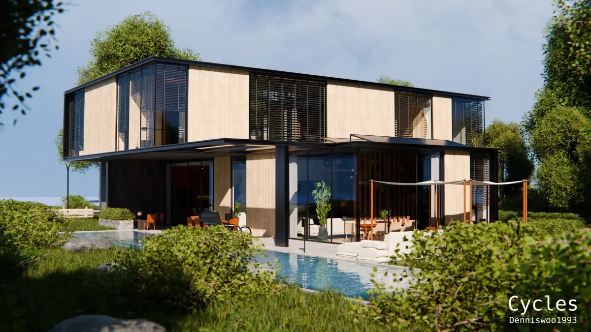 The video on this page features a 4K Eevee render of this house (rendered in blender 5.0)