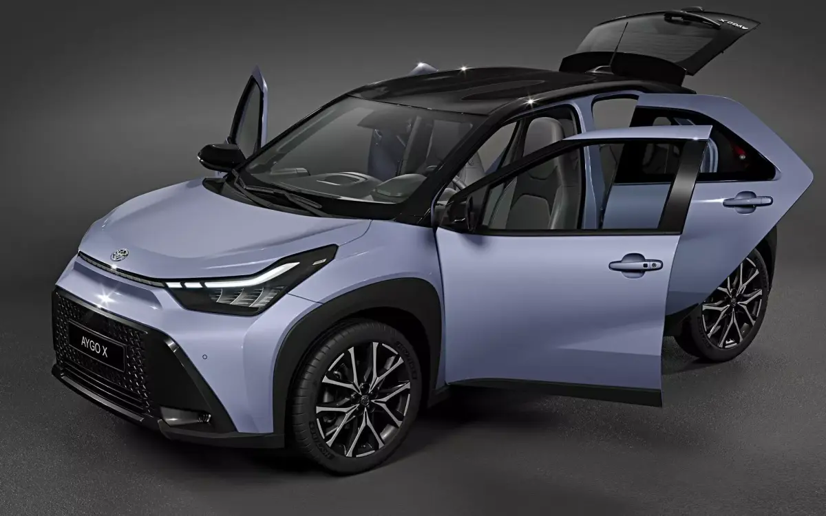 Photorealistic, high-quality and accurate 3D model of 2026 Toyota Aygo X Hybrid Lounge with high detailed interior and openable trunk.
