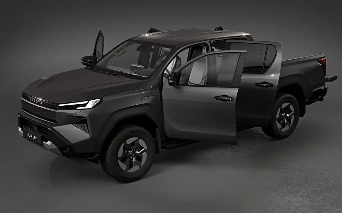 Photorealistic, high-quality and accurate 3D model of 2026 Toyota Hilux BEV with high detailed interior.
