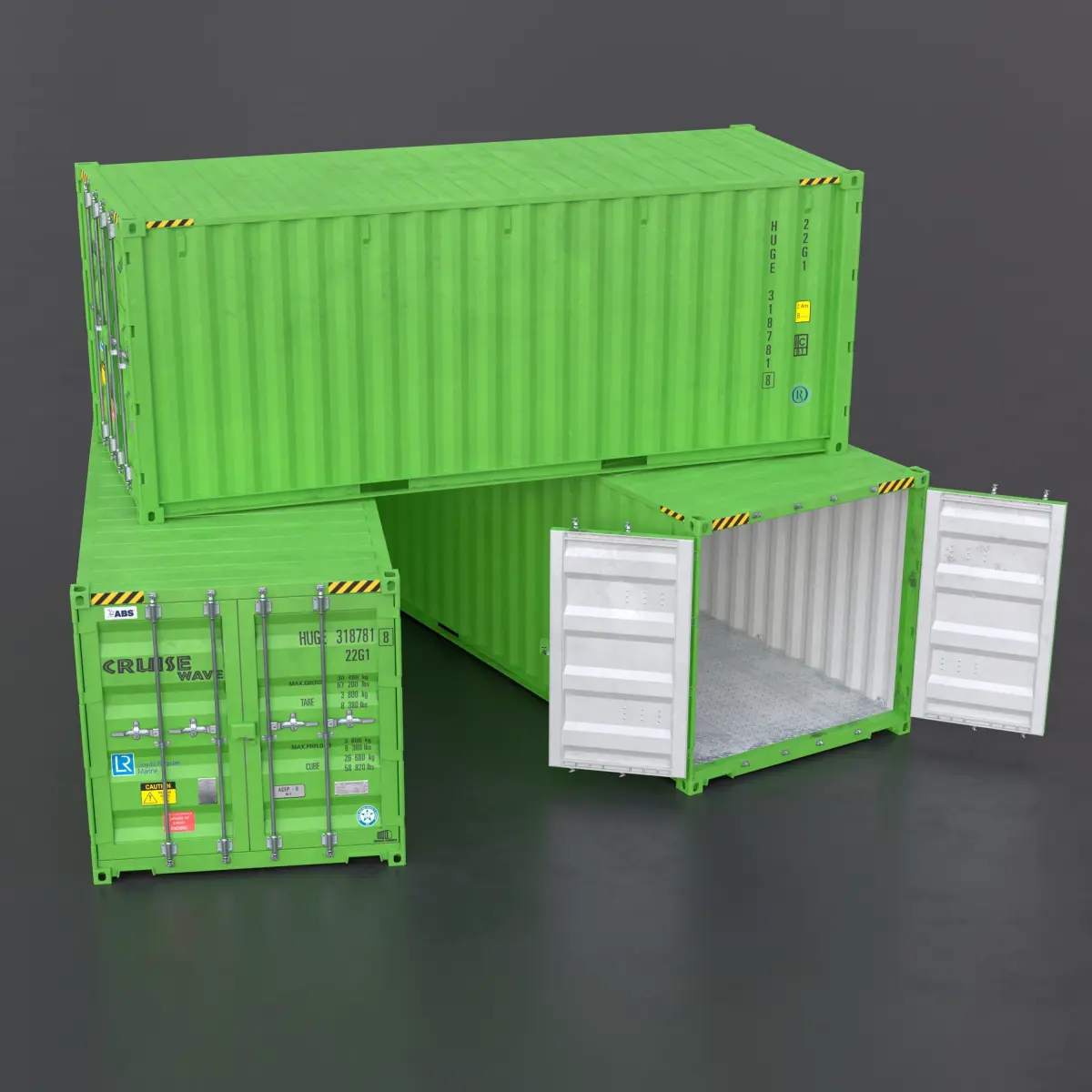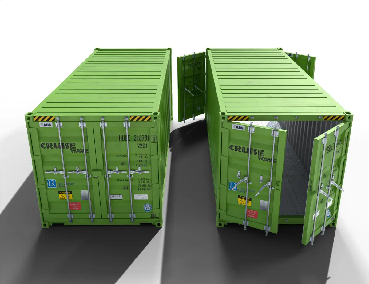 LP 20 ft Shipping Cargo Container with 4 individual drivers to move doors individualy. Made for use in Video Games but you can use it for basically anything.