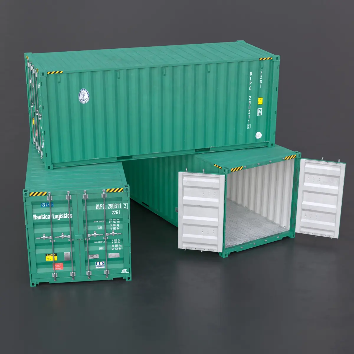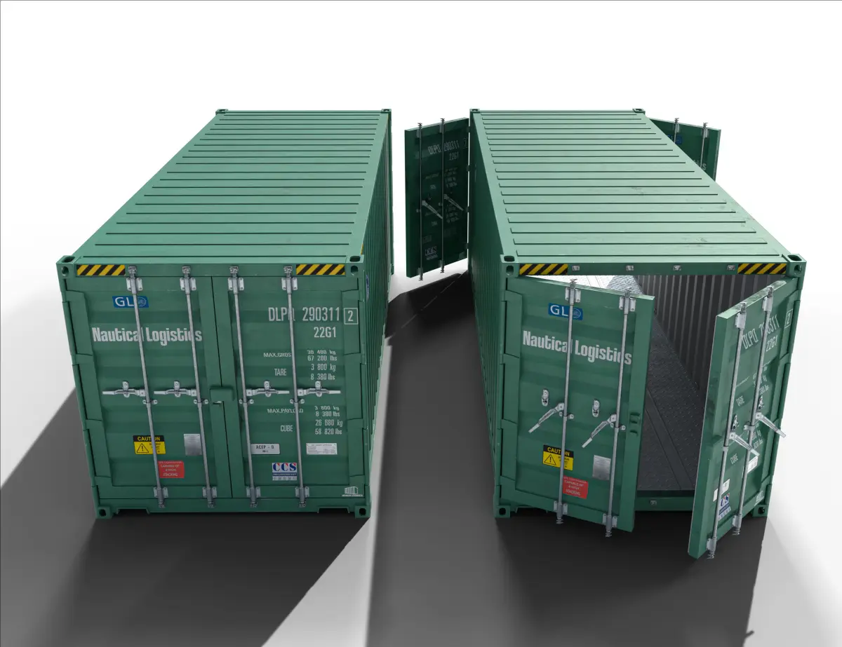 LP 20 ft Shipping Cargo Container with 4 individual drivers to move doors individualy. Made for use in Video Games but you can use it for basically anything.