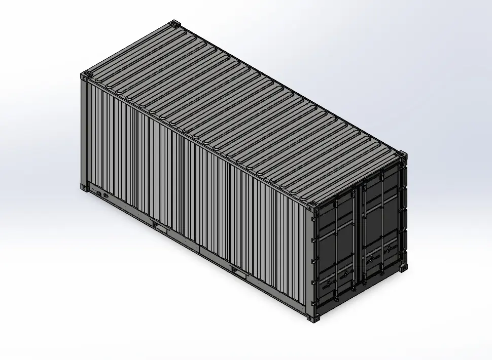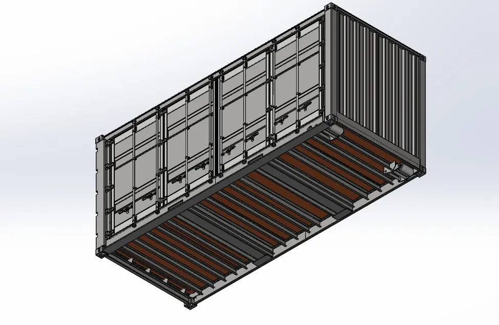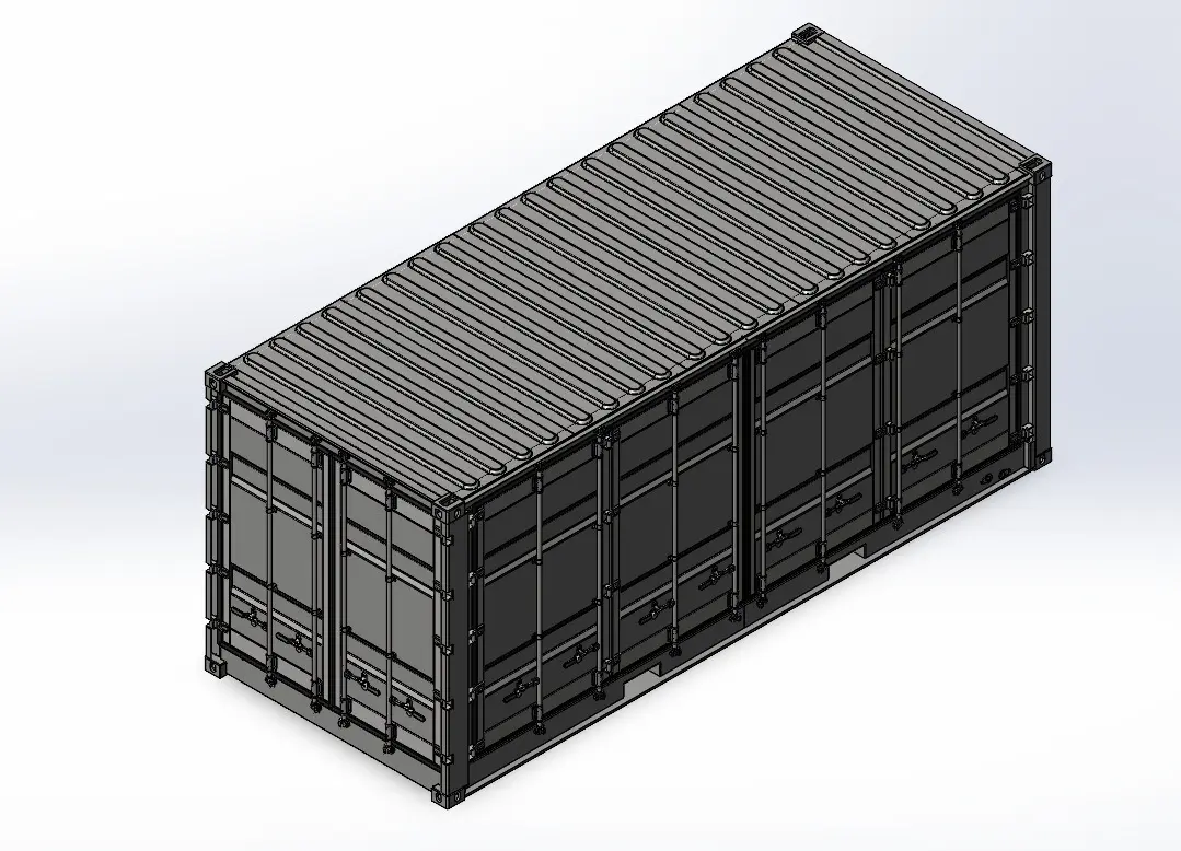 High-quality 3D model of a 20ft open side container, perfect for industrial, architectural, or design projects. Dimensions: 6058mm (L) x 2438mm (W) x 2591mm (H). Includes detailed internal structure. Available formats: STEP, Parasolid (x_t), IGS.