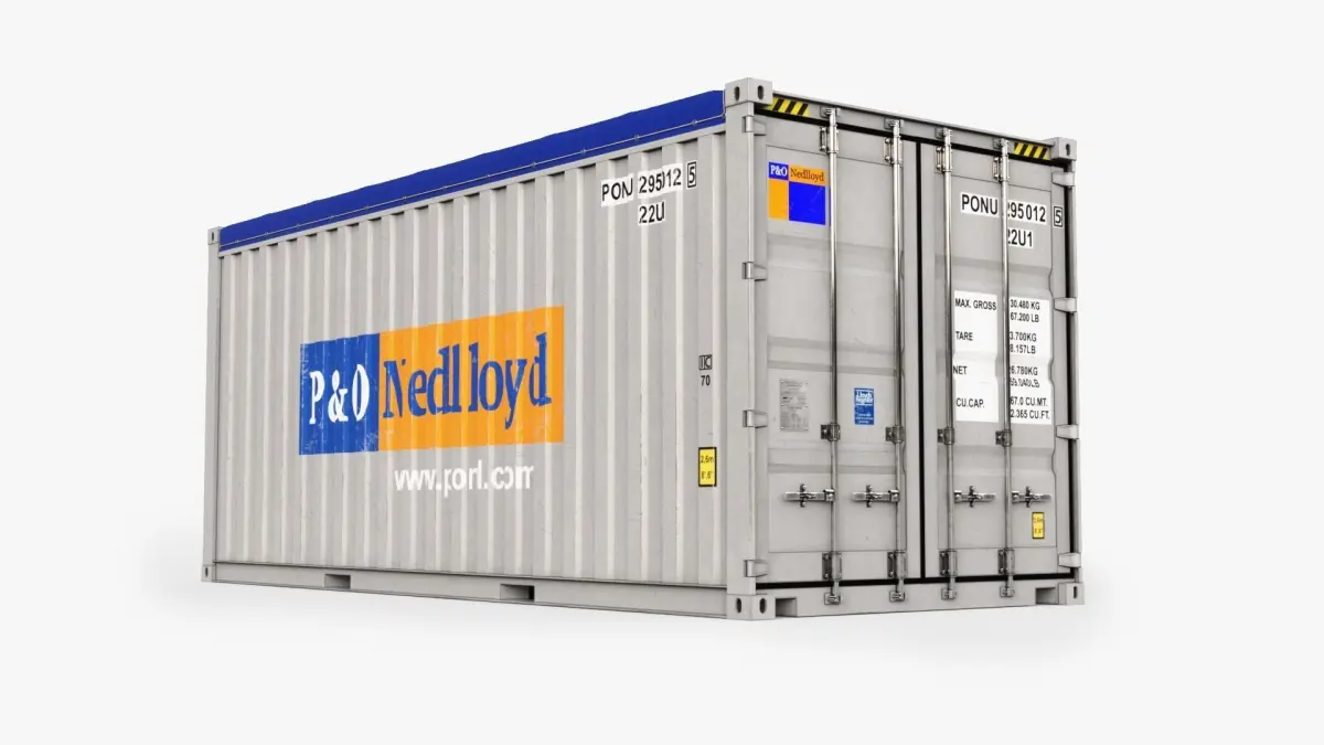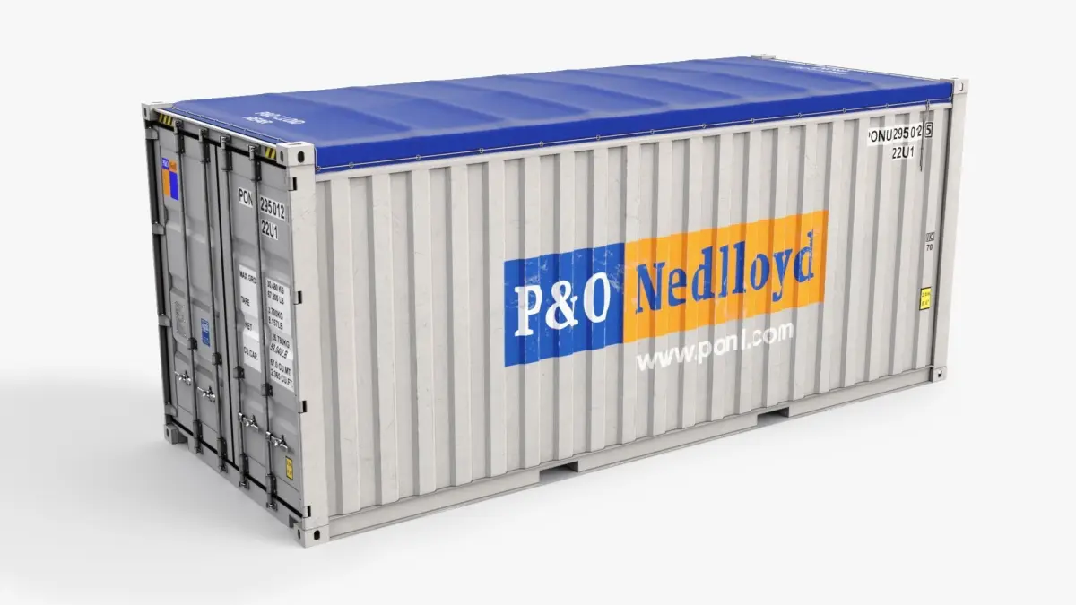 Open top containers have an open top covered by a tarpaulin instead of a solid roof. This enables oversized cargo such as timber and scrap metal to be loaded from the top. Open top containers normally also have end doors, like closed containers, to give flexibility for loading and unloading.High quality Open Top shipping container. Shipping Company- P&o Lloid. Container type- 20 feet High Cube. Modeled in Maya 2023. Real-world scale. All textures with 4096x4096. Maps- Diffuse, Glossiness, ior, Normal map, Refection, Opacity. Extra PBR maps- Occlusion, Metallic, Roughness.