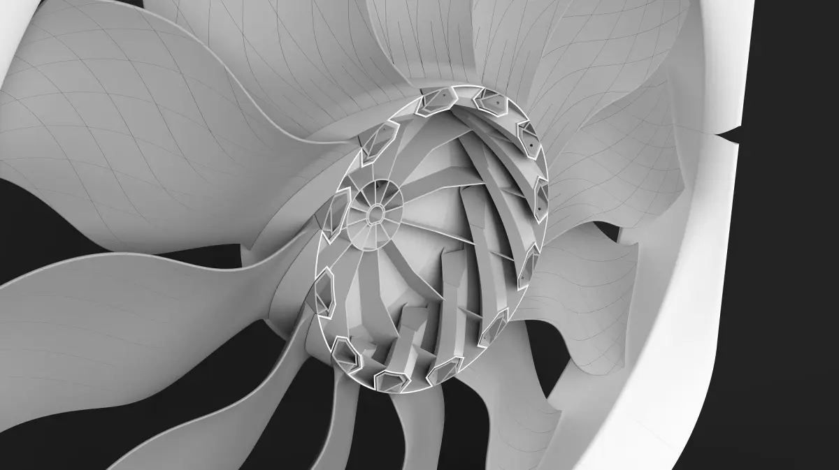 After a whole lot of CAD, slicing, printing, I had a good set of blades but the hub just wasn’t working (V2). It was designed solid with cut outs for where the perimeters were intended to go but the slicer just wasn’t making sense of the complex geometry and was skipping layers, skipping sections, and programming a whole ton of travel moves – I now know that the cuts should be even more carefully positioned, and tailored more to the shell geometry but this was taking too long and Booleaning everything just wasn’t working consistently – it was time for a shortcut. This is where V3 came in. Modelled at 0.8mm thick which mimics a vase mode print (just like our “Aerospace Hard Drive Enclosure – SSD – Lightweight” project) this hub finally worked! Albeit, with two shells. It was surprisingly strong and sure, there was a lot of stringing but it cleaned right off. Though, it felt… too strong. So, one more round of iteration and V4 was ready. Not only was it still strong but it was even lighter; so light, as a matter of fact that the whole hub just felt like a piece of foam.