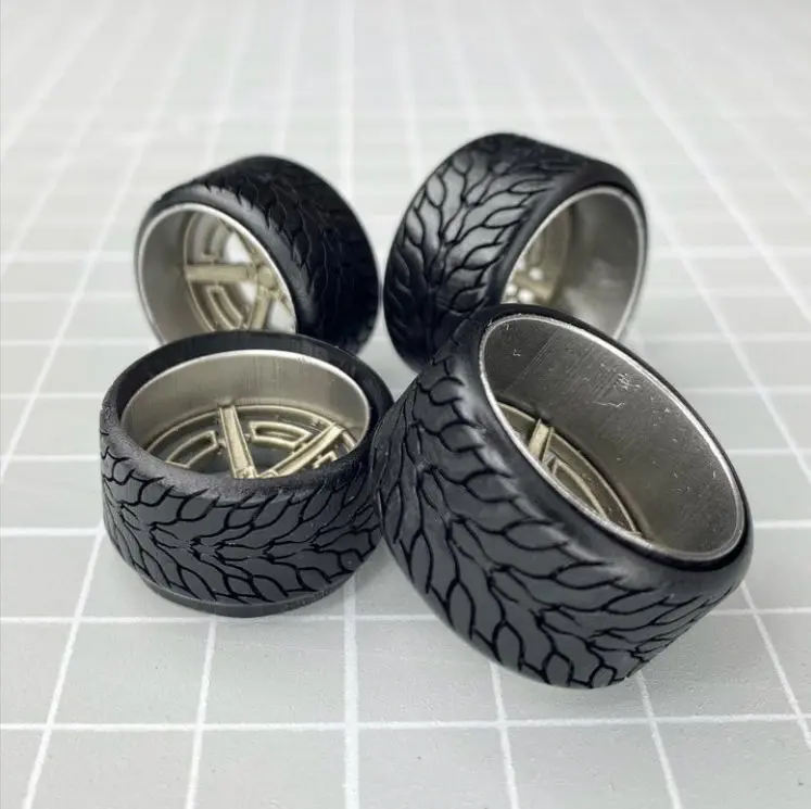 Designed from scratch is a set of Celica-R concave style wheels, front & back format with hoops . Also comes with a low profile MY Sportsman SR directional tire, high in detail, ideal for scale modeling (currently in 1/24 and 1/25 scale).