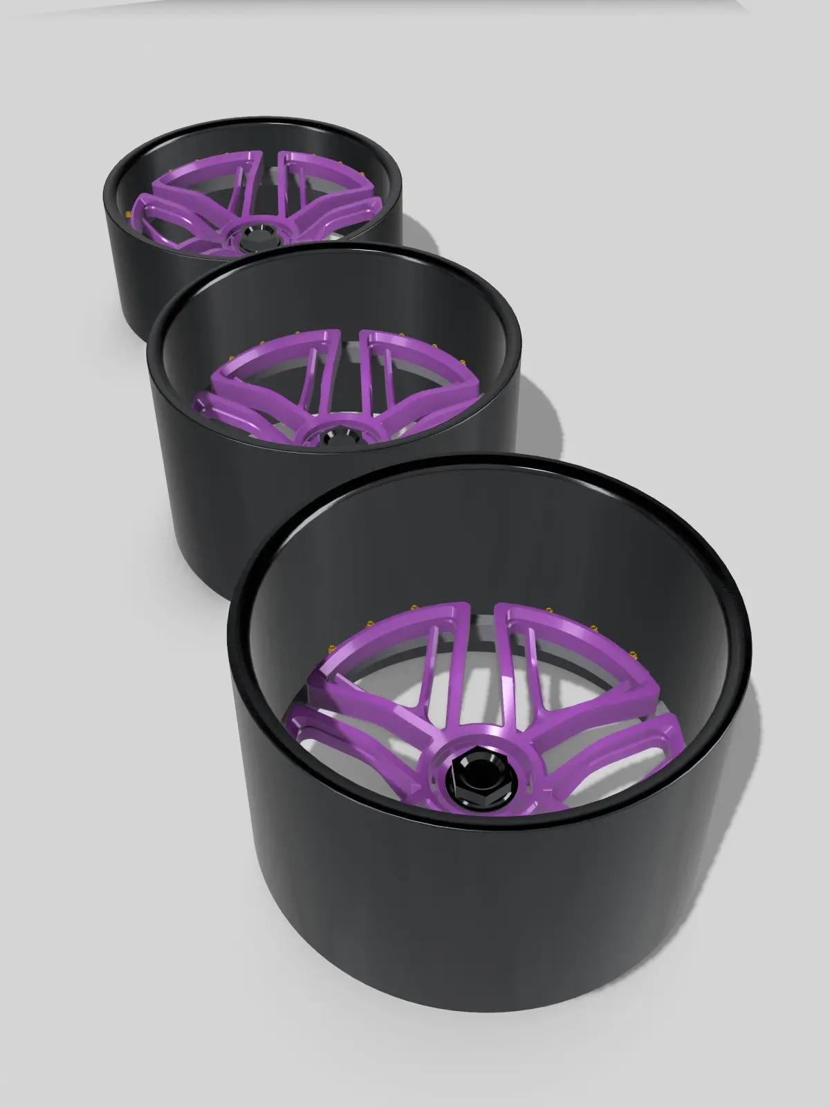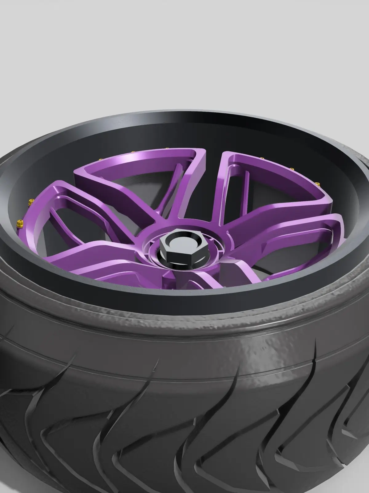 Designed from scratch is a unique set of INTERLINK styled wheels in 3 offsets (light concave, medium concave, and deep concave), with a centrelock format. Comes with a stretched directional tire, high in detail, ideal for scale modeling (currently in 1/24 and 1/25 scale).