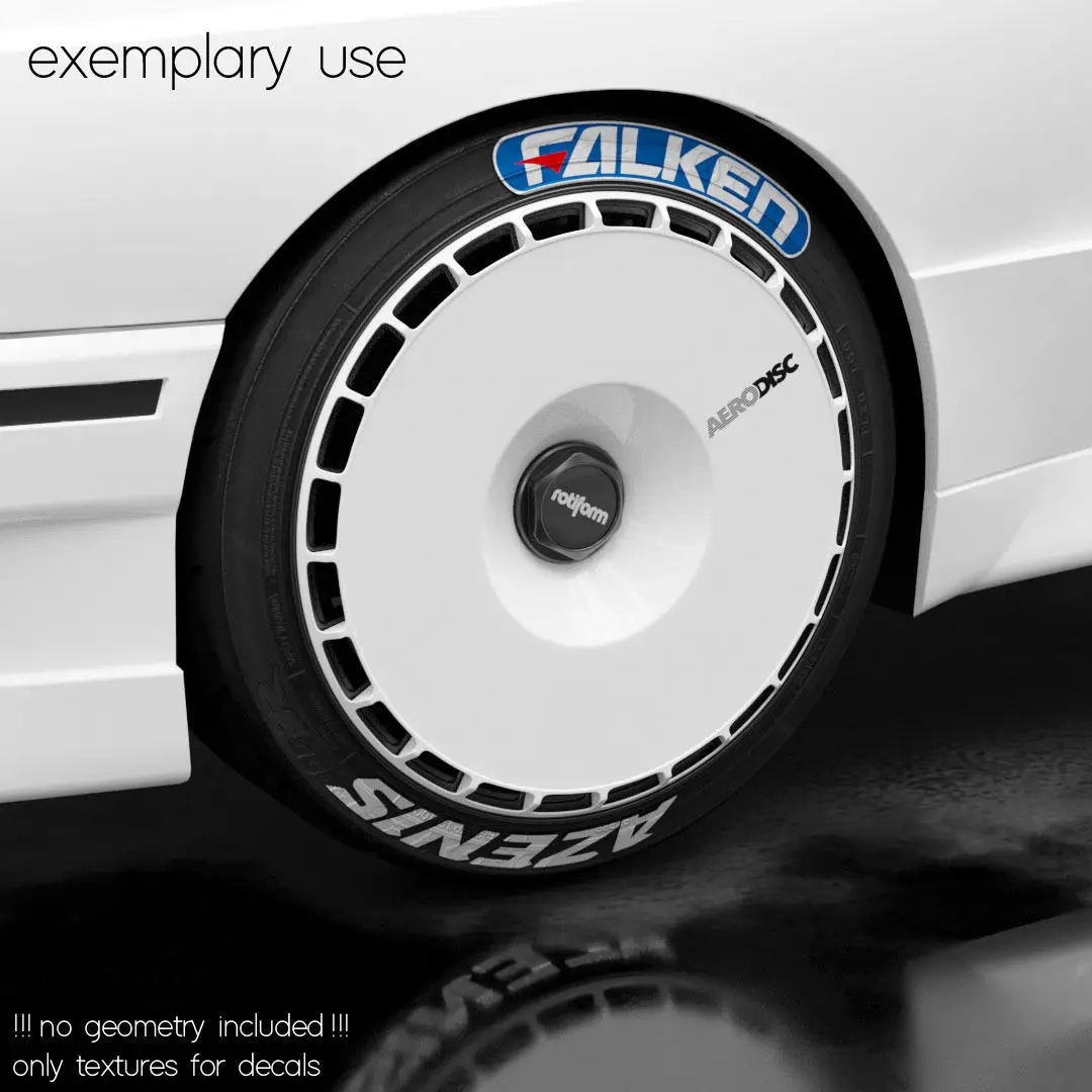 - tire sidewall: 20x 4K PNG (Decal)