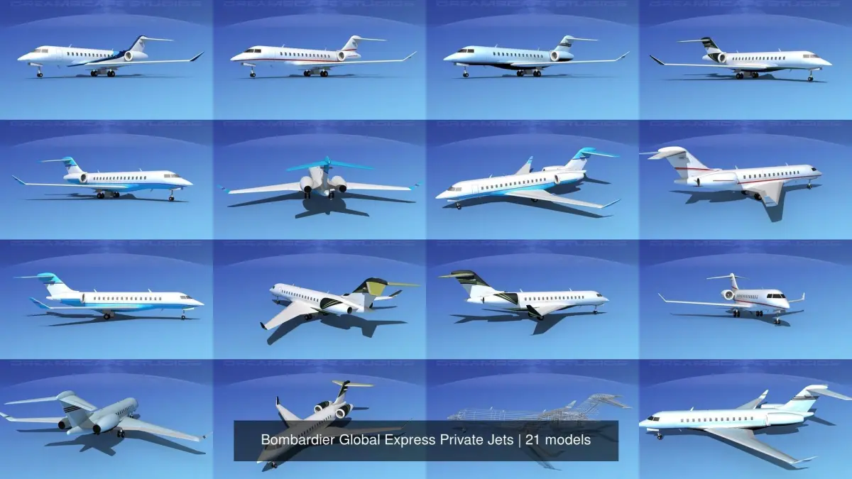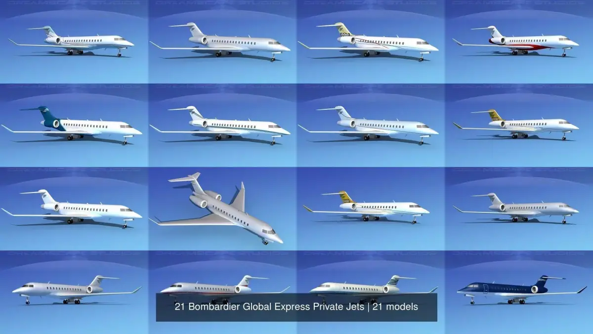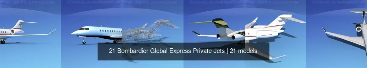 These 21 Bombardier Global Express Private or Business Jet models are built very near to scale within a couple of percent of the actual general dimensions. Models include animateable features ailerons, flaps, rudder, elevator, rudder, landing gear, landing gear doors, and turbines. Models come with a good amount of detail on the exterior. Jets are fully textured and provided in several different formats and liveries. Native format is 3ds Max. Exported formats (3ds, lwo and obj) are prepared well to work correctly with every standard modeling software. Compatibility level with other software’s may be limited. Models are textured with multiple large HD maps and provide a good realistic rendering when lighted and animated properly. Models are built to be used in in-flight animations and video or simulation. These can also be used to populate an airport scene. Previews were rendered using 3dsmax standard scanline.