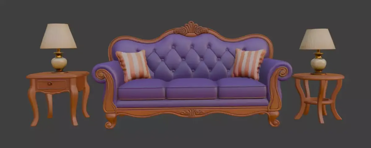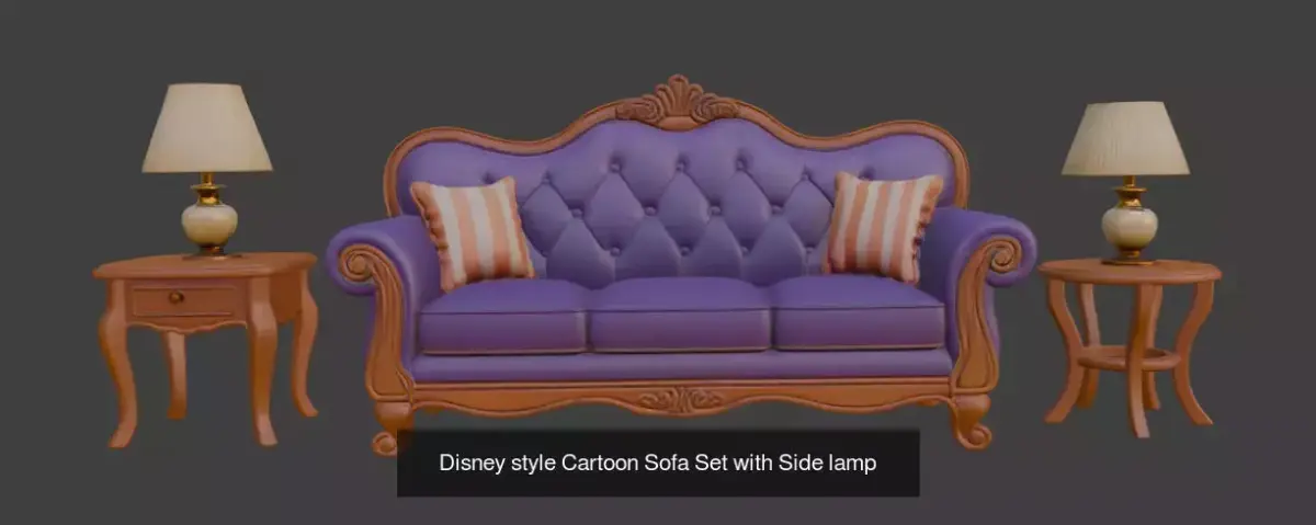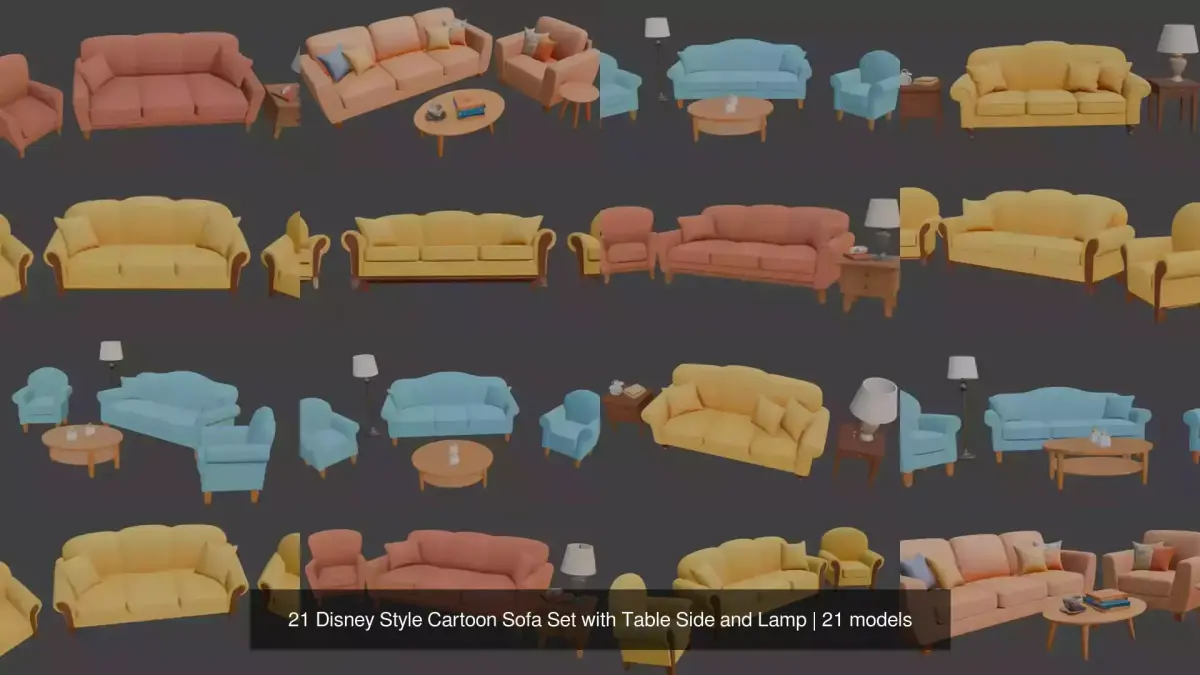 21 Disney Style Cartoon Sofa Set with Table, Side Table, Table Lamp.