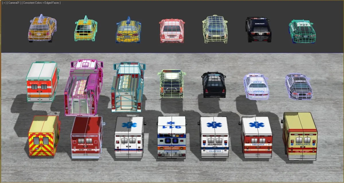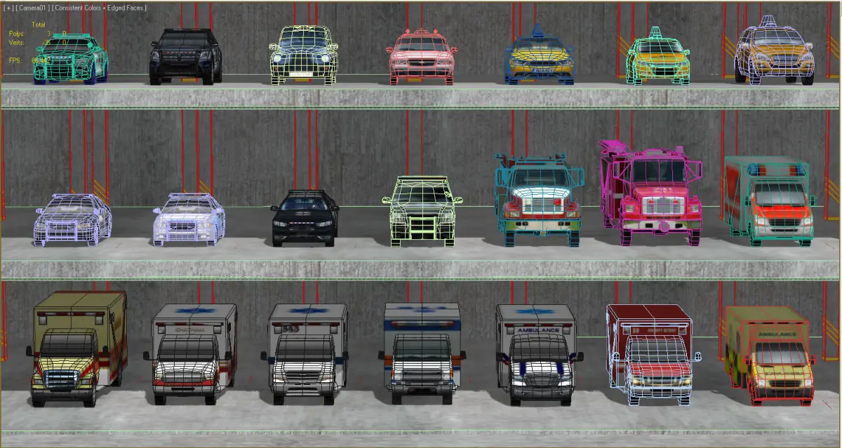 Lowpoly 3d models fully maped and textured in 3ds max 2018. Texture made from photos. Polygons counted from all 21 Low Poly vehicles summary. (3ds max 2009 standard materials included)FBX format with standard materials includedMade for use in games, real-time rendering soft, Numerous copying, perfect for arch.rendering.