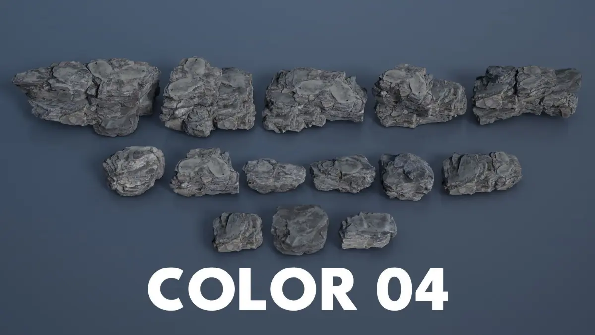 - The high poly standalone version: includes 8 rock models, polycount 1000000. Each model comes with its own set of textures. Texture size 4096, one color version