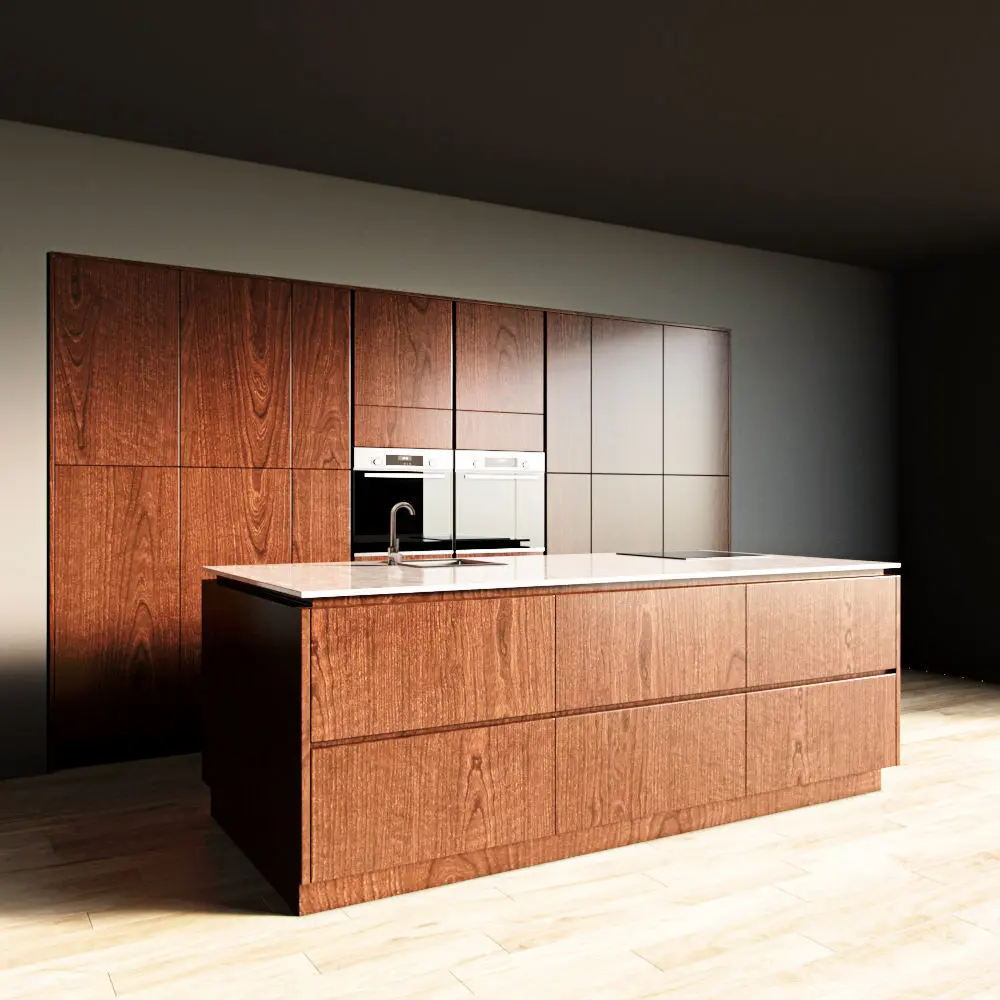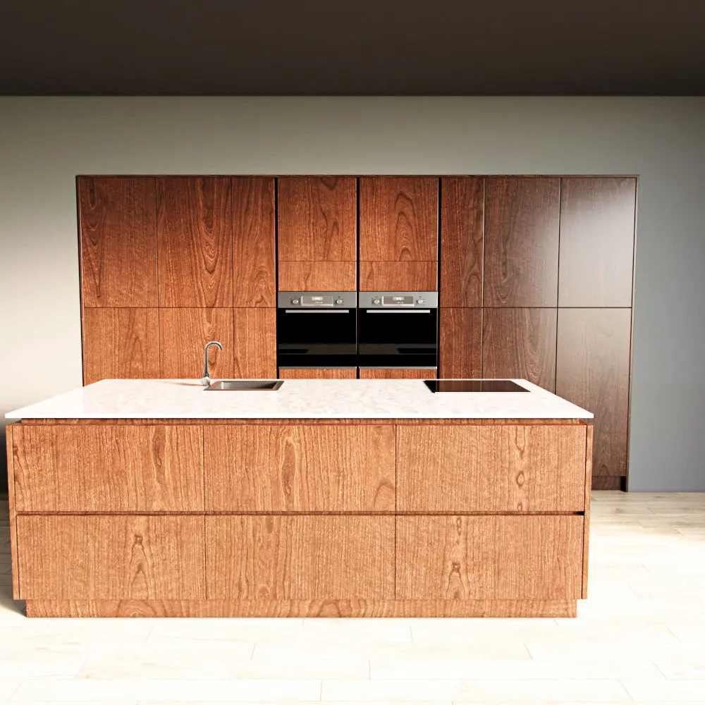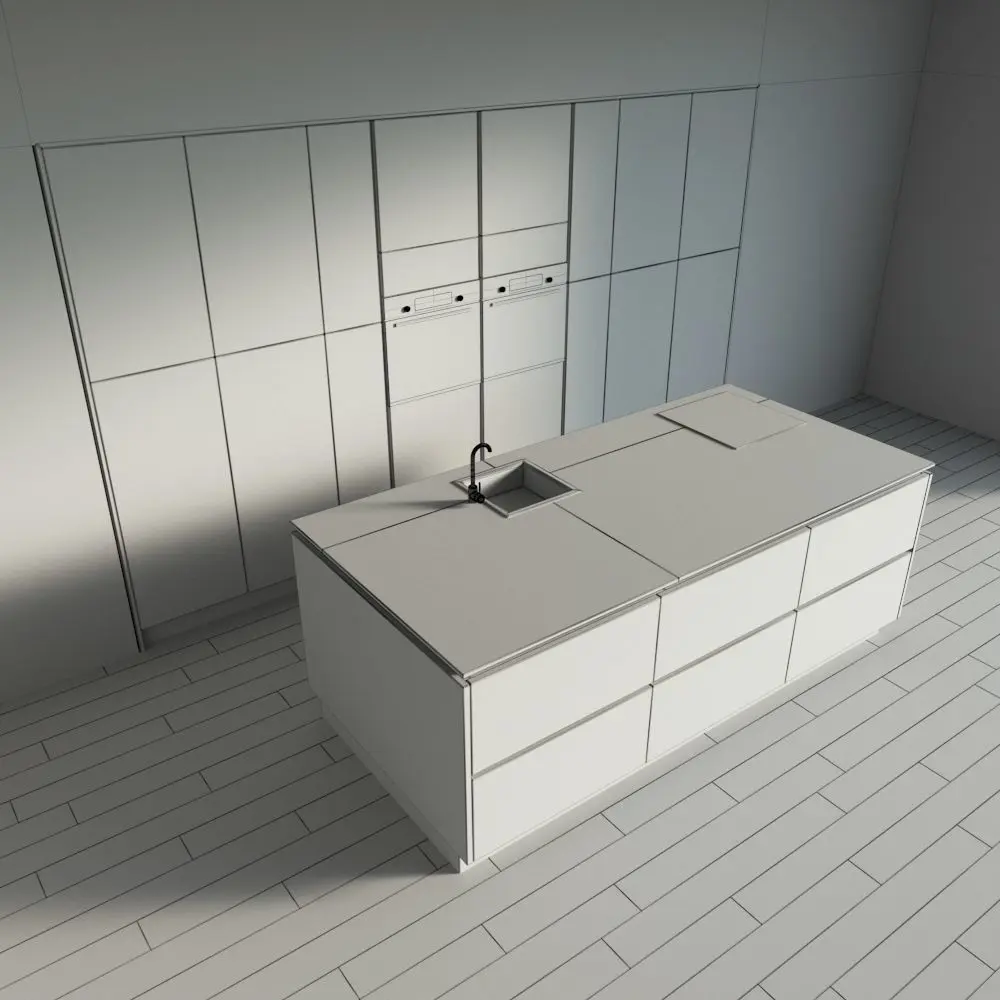 Only the kitchen and the island are present in the scene. The floor, walls, ceiling are yours.