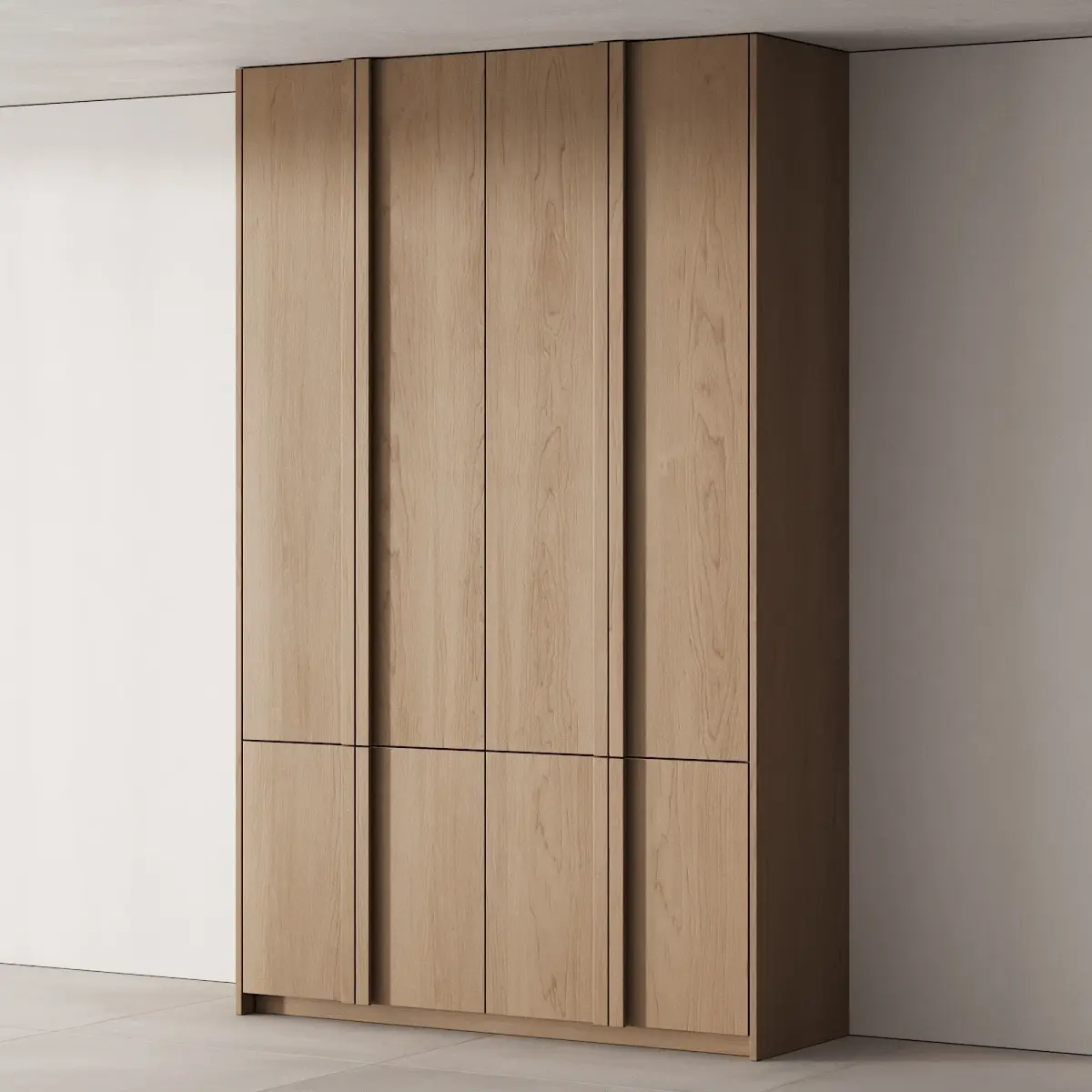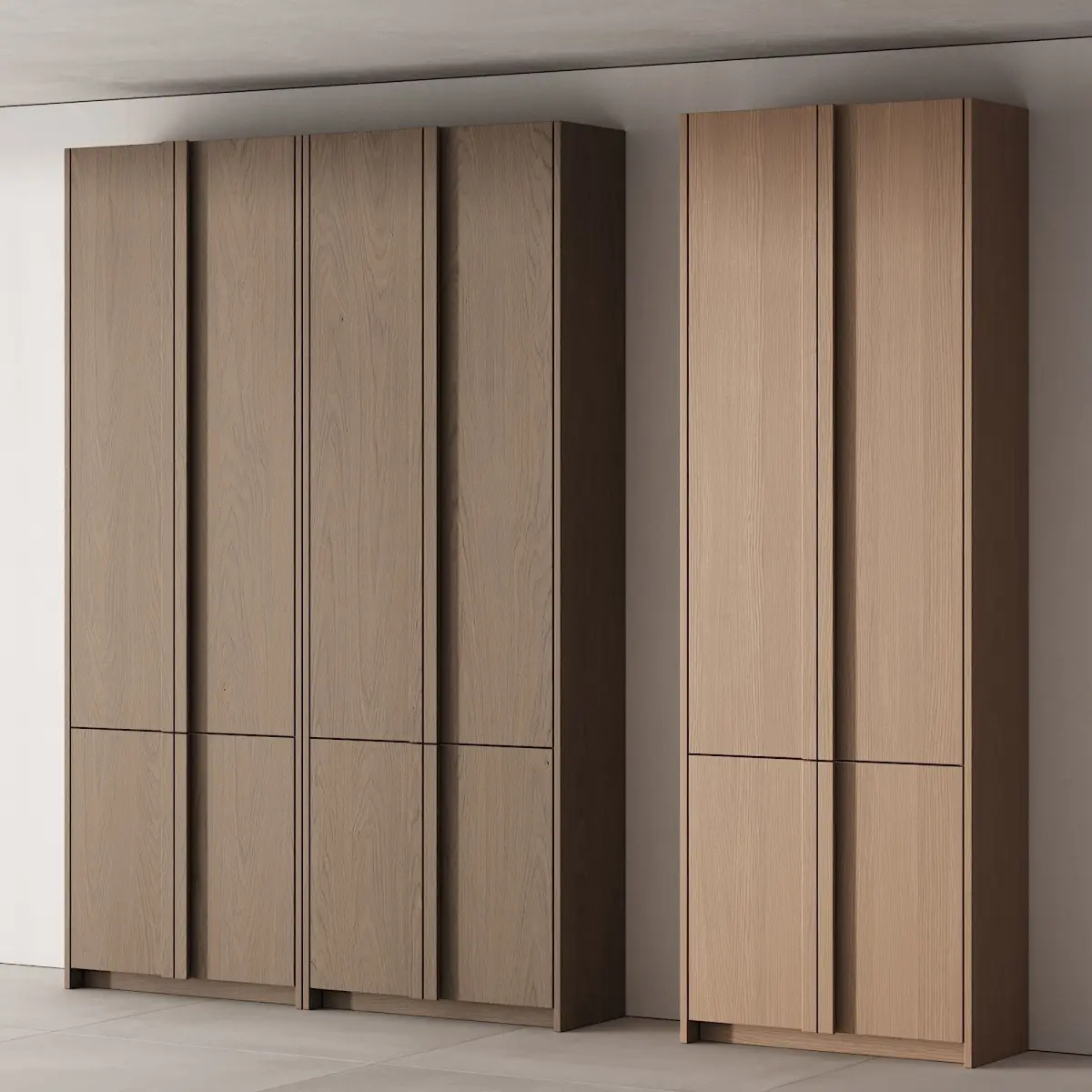 3d model: floor cabinet / wardrobe made in 5 different sizes and 5 different materials (demonstrated in additional previews) for use in an interior in the style of modern / minimalism / Scandinavian / japandi / wabi sabi.