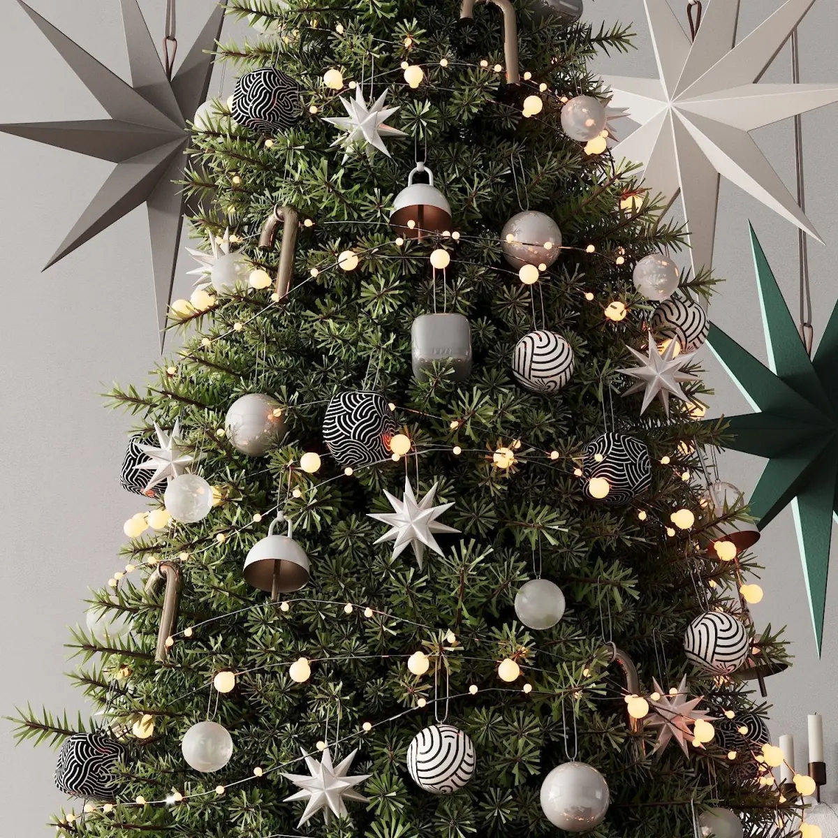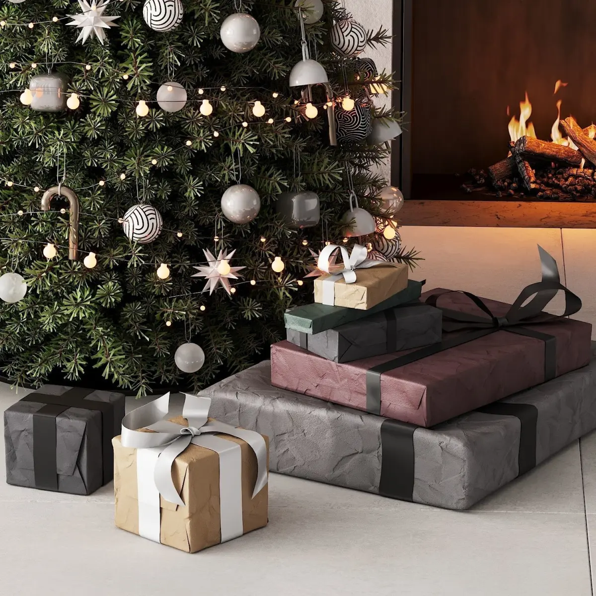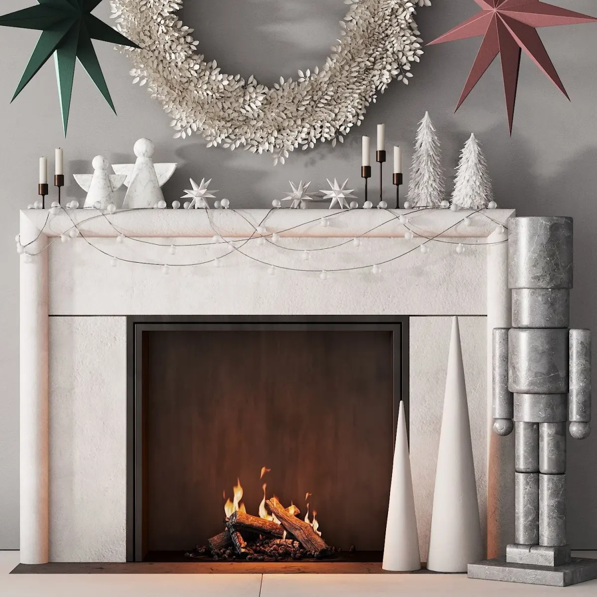New Year / Christmas set 3d model : Christmas tree, fireplace with fire and firewood, gifts, New Year's wreath, 'tin soldier - nutcracker' made of marble, garland, toys, decor.